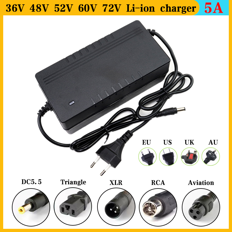 42V 54,6 V 58,8 V 67,2 V 84V 5A Зарядное устройство для литиевой батареи AC 100-240V для 36V-72V 10Ah 15Ah 20Ah 25Ah 30Ah Электрический скутер электрический велосипед 10S-20S серии Li-ion зарядное устройство постоянного тока 5,5*2,1 мм вилка для ЕС/США/Австралии/Великобритании