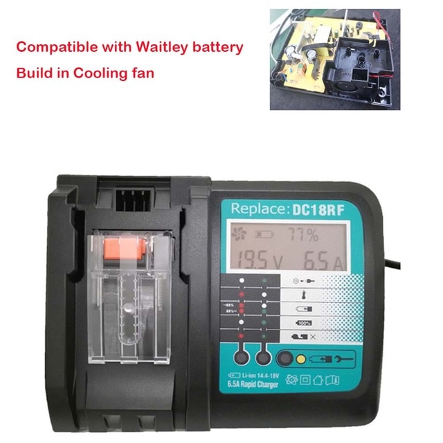 DC18RF литий-ионное зарядное устройство 6A зарядка 14,4 В 18 В BL1830 BL1840 BL1430 BL1440 зарядное устройство для электроинструмента с вентилятором