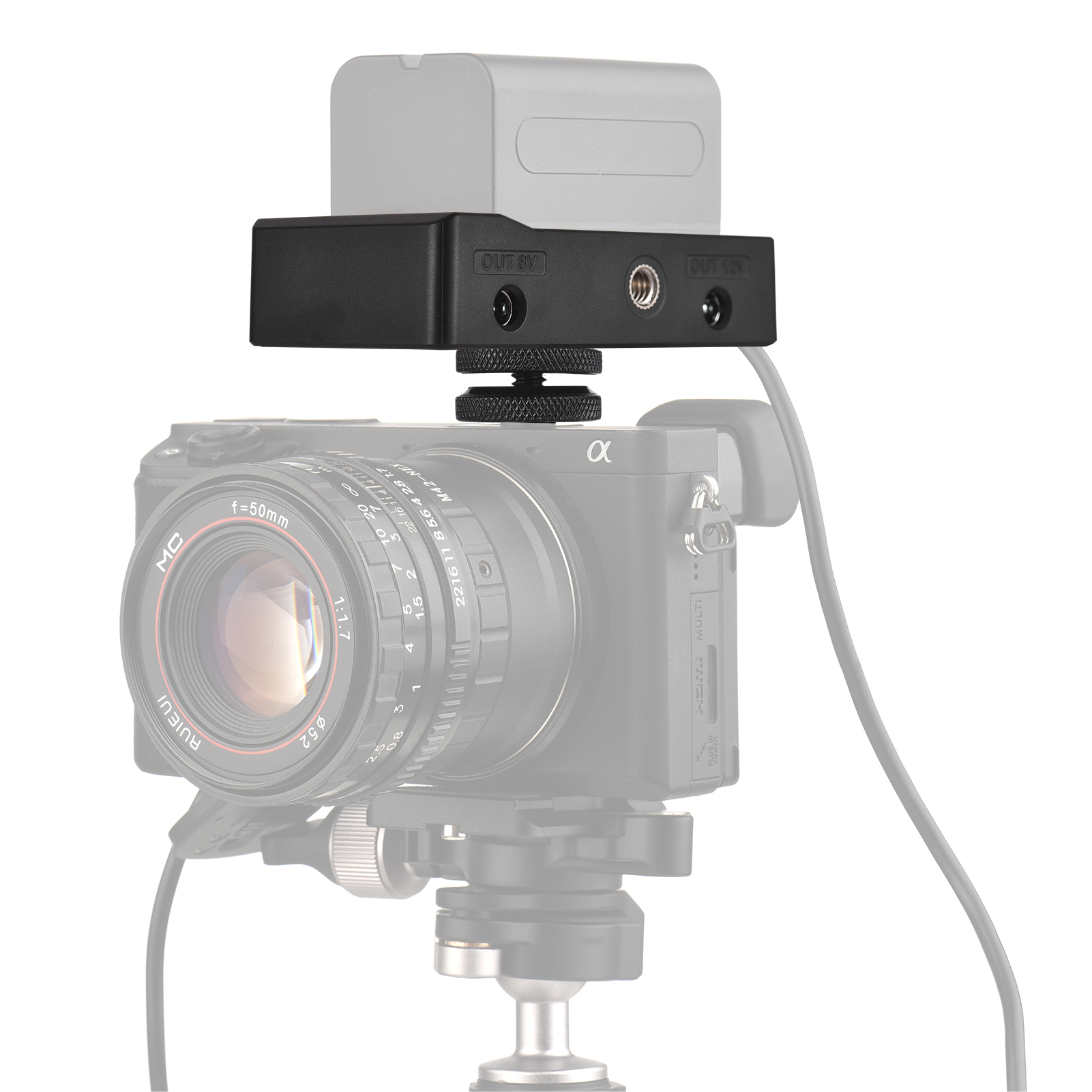 С выходами DC12V и DC7.4V, что позволяет вам питать Ваши камеры DSLR/ ILDC/ BMPCC удобно от батареи.