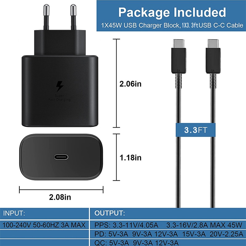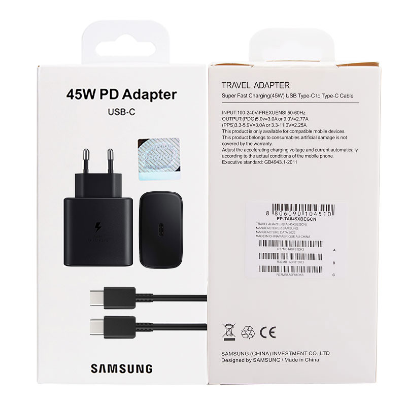 Samsung 45 Вт Оригинал USB-C Супер Адаптивное зарядное устройство для быстрой зарядки EP-TA845 Для Samsung GALAXY S22 S21 Plus Ultra Note 10 20 5A Кабель