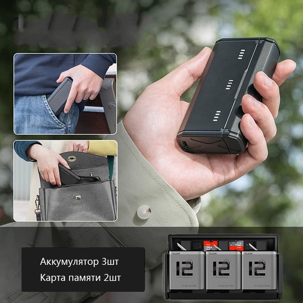 Удобная одновременная зарядка двух аккумуляторов GoPro, а также дополнительное увеличение возможностей камеры. В комплект входят двойное зарядное устройство и два улучшенных аккумулятора Enduro, которые существенно увеличивают время работы камеры и повышают ее производительность на холоде по сравнению со стандартными аккумуляторами GoPro.