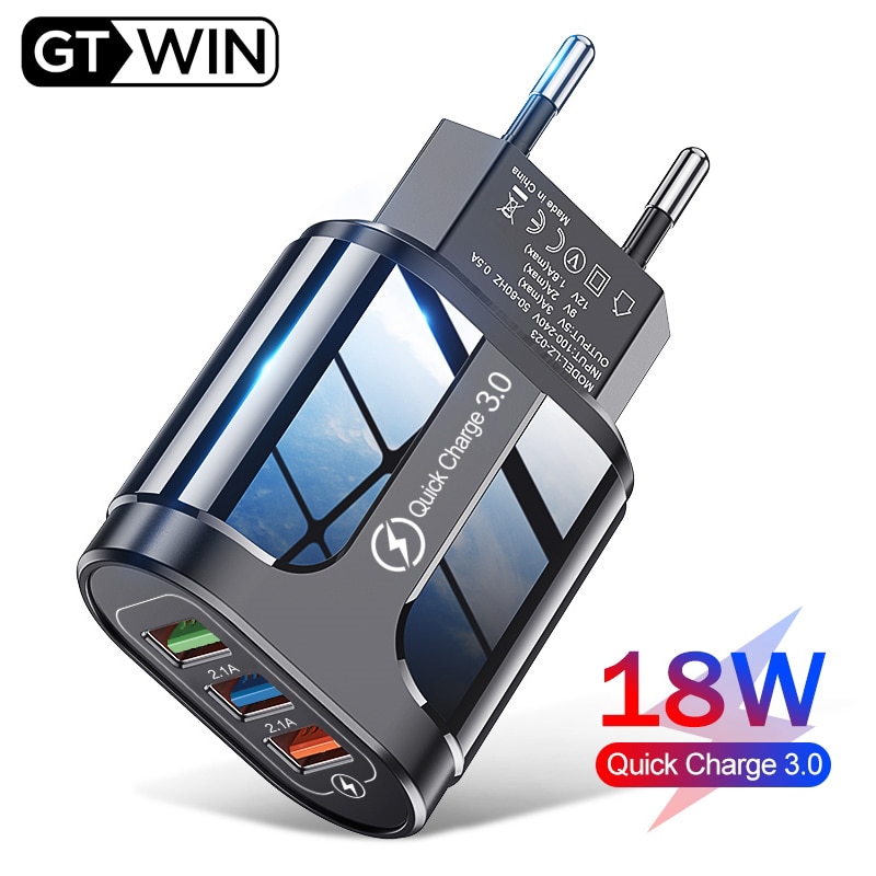 Зарядное устройство GTWIN с 3 USB-портами для iPhone 15, настенное быстрое зарядное устройство 3.0, адаптер для зарядки для Samsung, Xiaomi Mi, note 10, Huawei