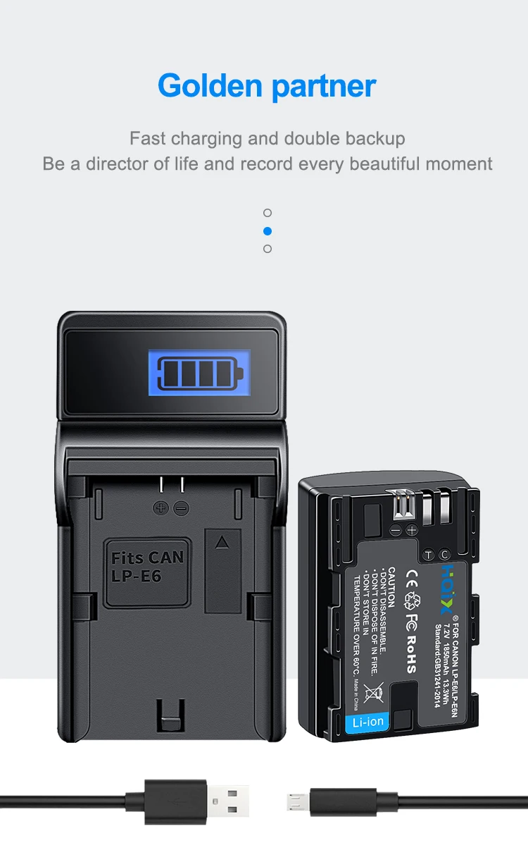 Зарядное устройство HQIX для Canon EOS R5 R5C R6 R7 90D 80D 70D 60D 6D Mark II 6D2 7D2 5D4 5D3 5D2 5DS 60Da