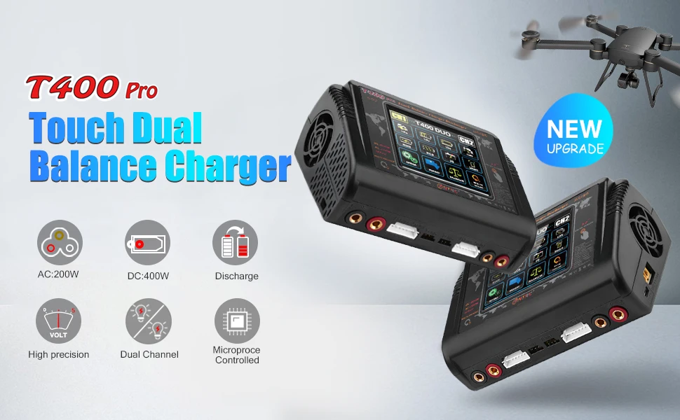Зарядное устройство HTRC T400 Pro для литий-полимерных аккумуляторов DC 400W AC 200W 12Ax2, зарядное устройство для литий-ионных и литий-ионных аккумуляторов