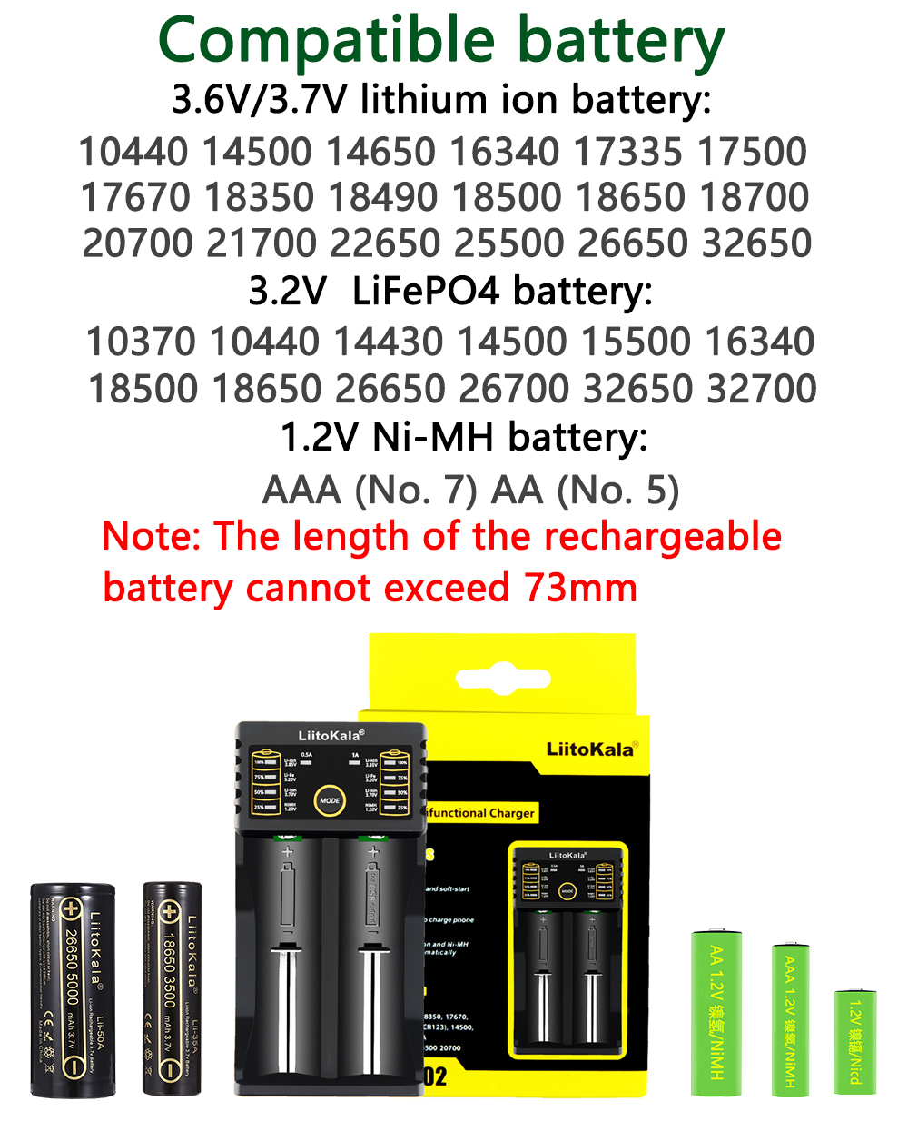 Зарядное устройство LiitoKala для аккумуляторов 18650 26650 16340 LiFePO4 14500 V Ni-MH Ni-Cd smart