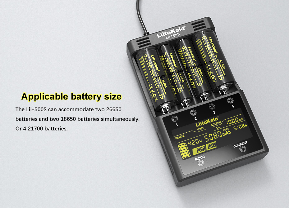 Ток разряда: 250мА/500мА/750ма аккумуляторная батарея характеристики: 26650,21700,18650,18350, 20650,14500, AA, AAA и т. Д.