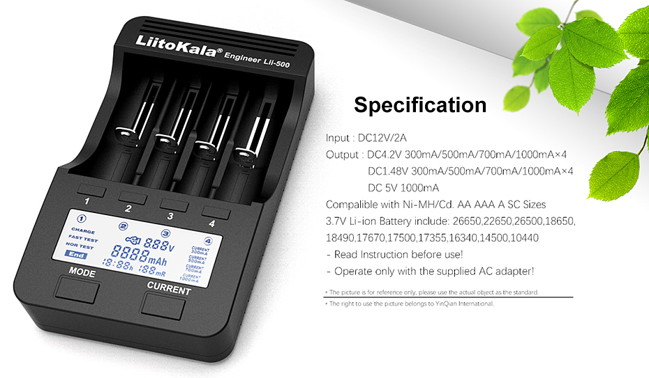 Ток зарядки литиевой батареи: 500мА * 4/700мА * 4/1000мА * 4 2000ма * 2
