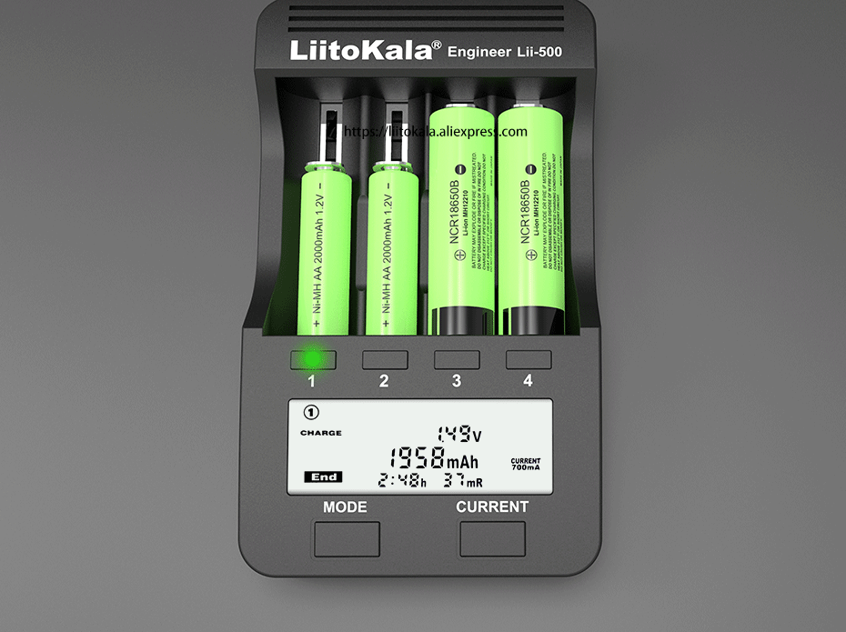 Зарядный ток составляет 700 мА/1000 мА, а ток разряда по умолчанию 500 мА;