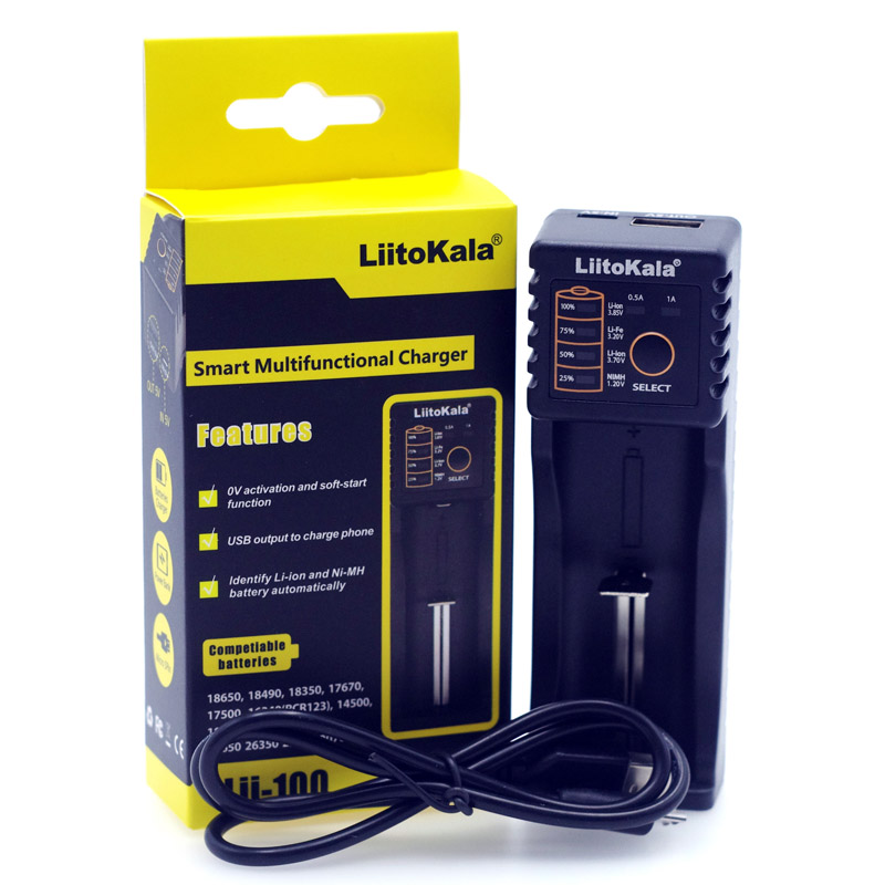USB-комплект Liitokala Lii100: зарядное устройство Lii100 + USB-кабель + Инструкция (Примечание: в комплект не входит вилка!)