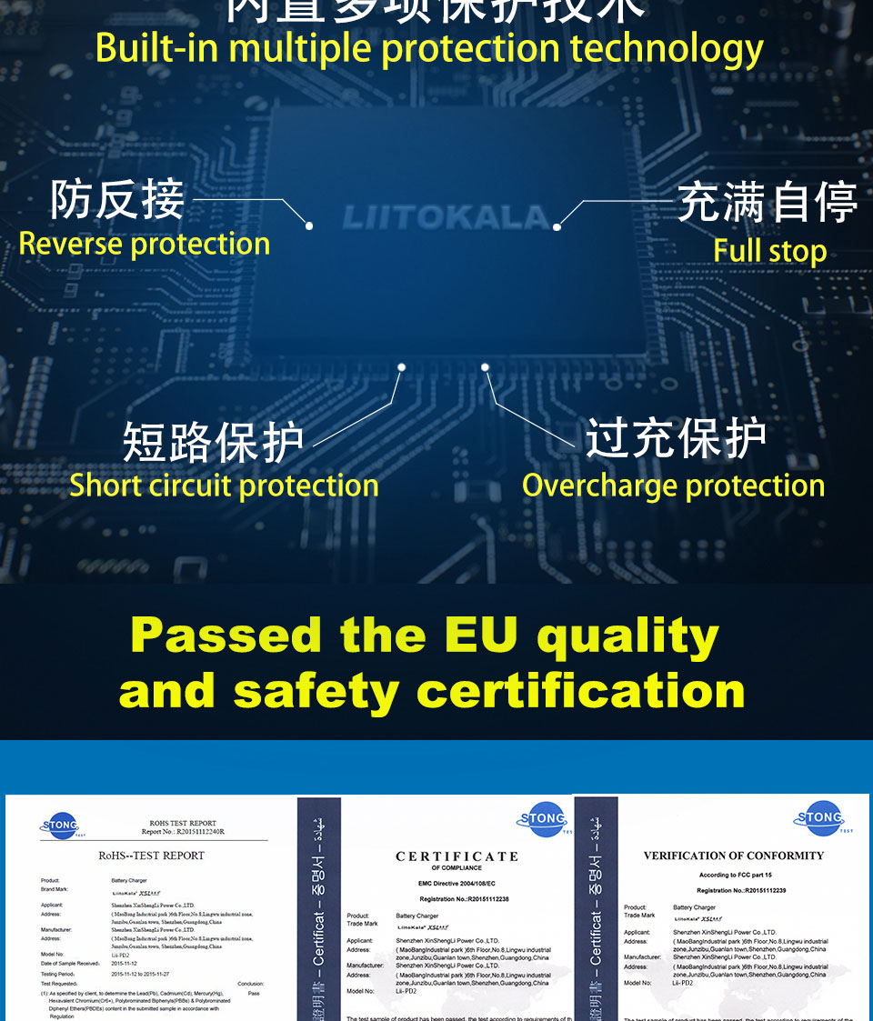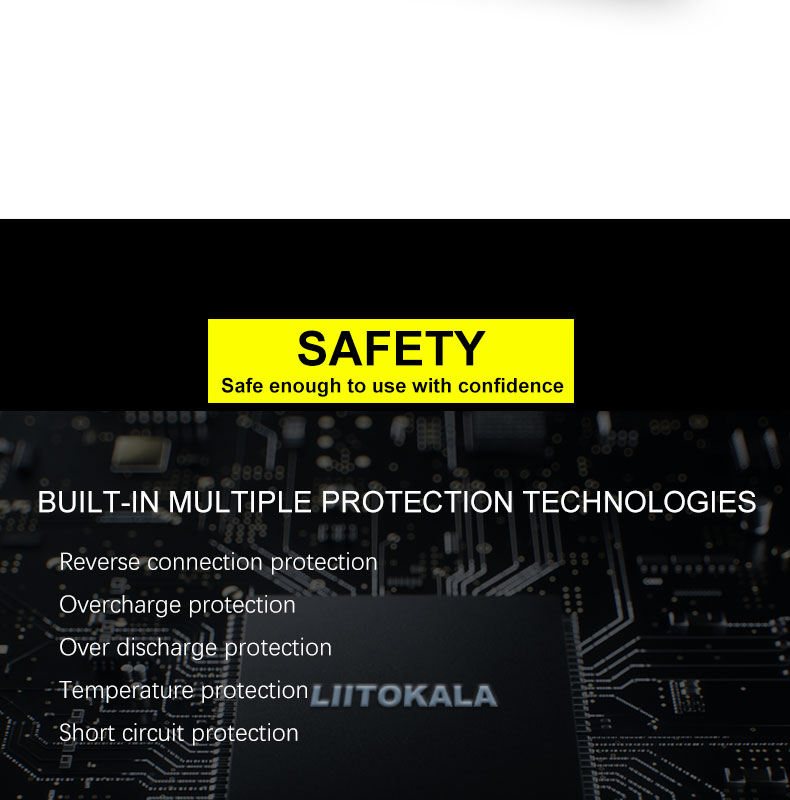 7. Существует несколько функций защиты, таких как перезарядка, переразряд, короткое замыкание и т. Д. В то же время он может интеллектуально и автоматически определять неисправные батареи;