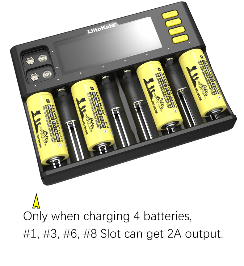 3. Выходной ток: Li-Ion/IMR/LiFePO4 2000 мА * 1 (только для слота № 4),