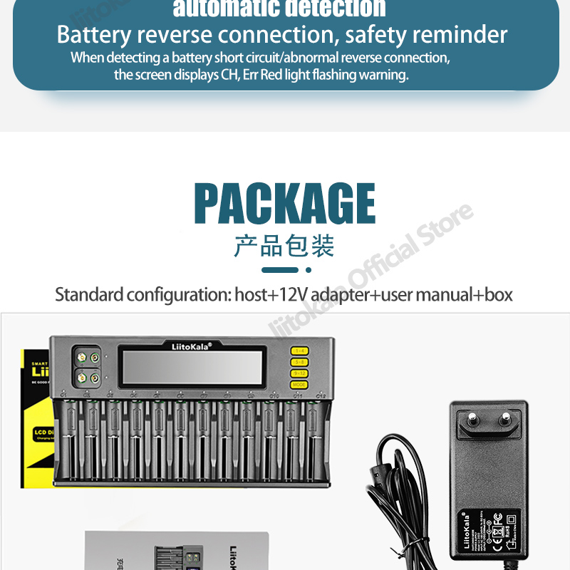 7. Он имеет несколько функций защиты безопасности, таких как перезарядка, переразряд, короткое замыкание, обратное соединение и т. Д., И может интеллектуально и автоматически определять неисправные батареи;