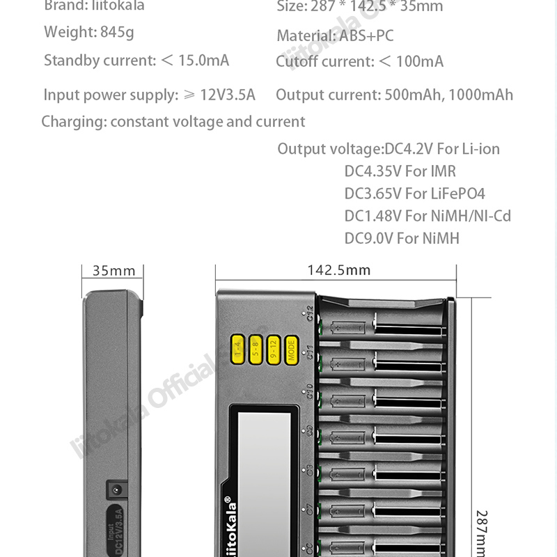 Зарядное устройство LiitoKala с ЖК-дисплеем и 12 слотами для Li-Ion LiFePO4 Ni-MH Ni-Cd аккумуляторов 9 в 21700 20700 26650 18650 16340 RCR123 18350