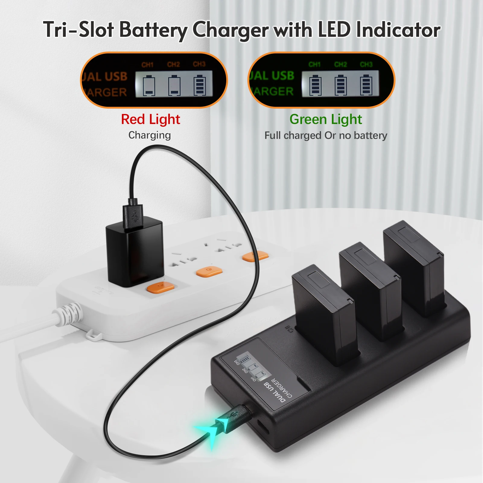 Зарядное устройство LP-E17 с 3 слотами для фотографий Canon EOS RP/Rebel T8i T7i T6i/T6s/SL2/SL3/M3/M5/M6/77D/200D/750D/760D/800D/8000D