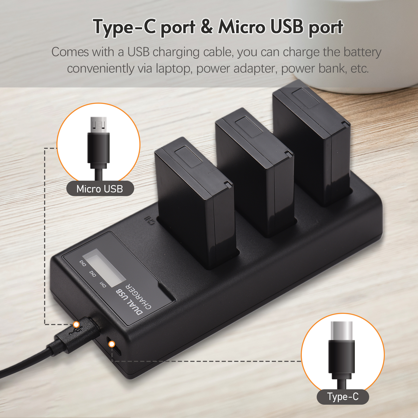 LP-E17 Зарядное устройство со светодиодным дисплеем с 3 слотами для Canon EOS RP/Rebel T8i T7i T6i/T6s/SL2/SL3/M3/M5/M6/77D/200D/750D/760D/800D/8000D