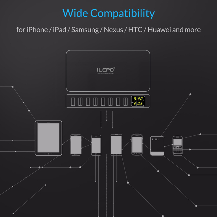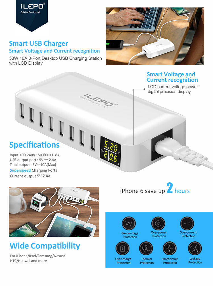 8-Порты и разъёмы USB Зарядное устройство зарядная станция для нескольких устройств с светодиодный Дисплей настольные часы настенные Зарядное устройство для ноутбуков, Планшеты, телефонов и планшетов, сертификат Европейского соответствия, сертификат независимого Испытательного и сертификационного PSE Сертификация
