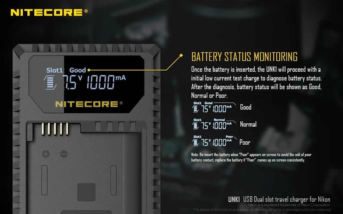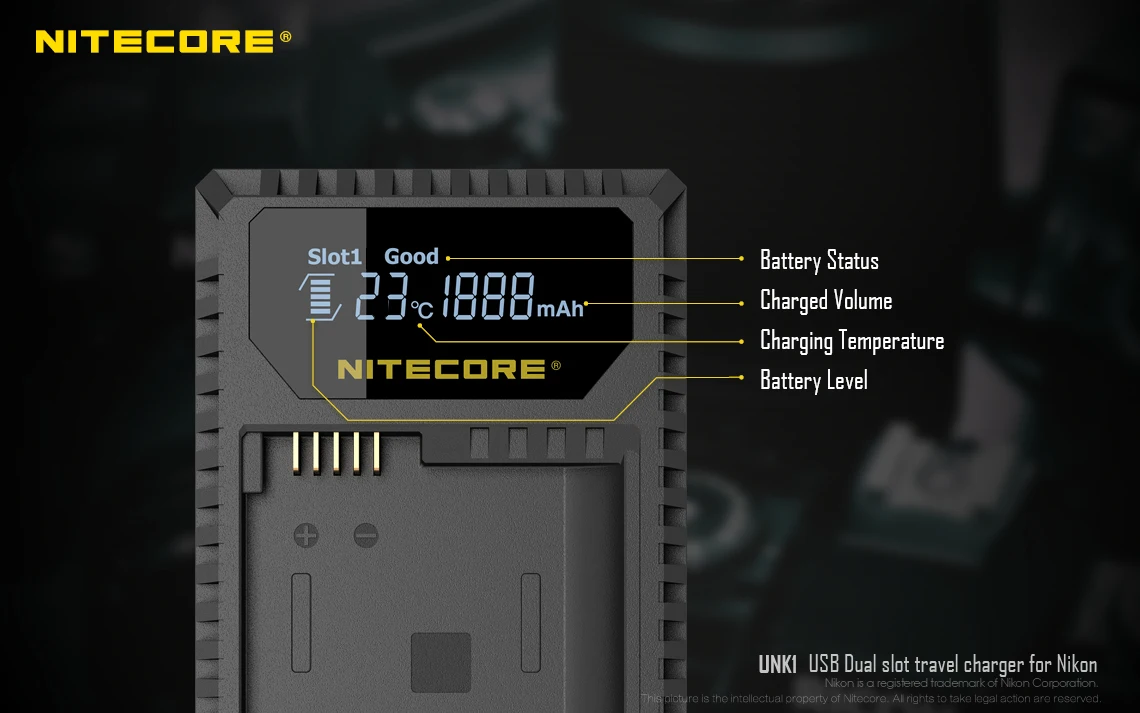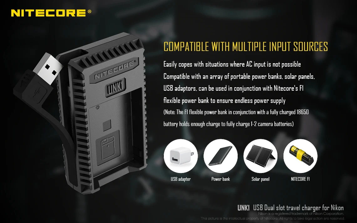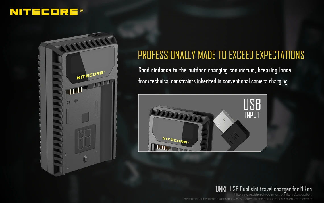 Зарядное устройство Nitecore UNK1 для камеры, USB двойной слот для батареи Nikon, EN-EL14 D750 D810 D610 DF D7100 D7000 D5100 D600