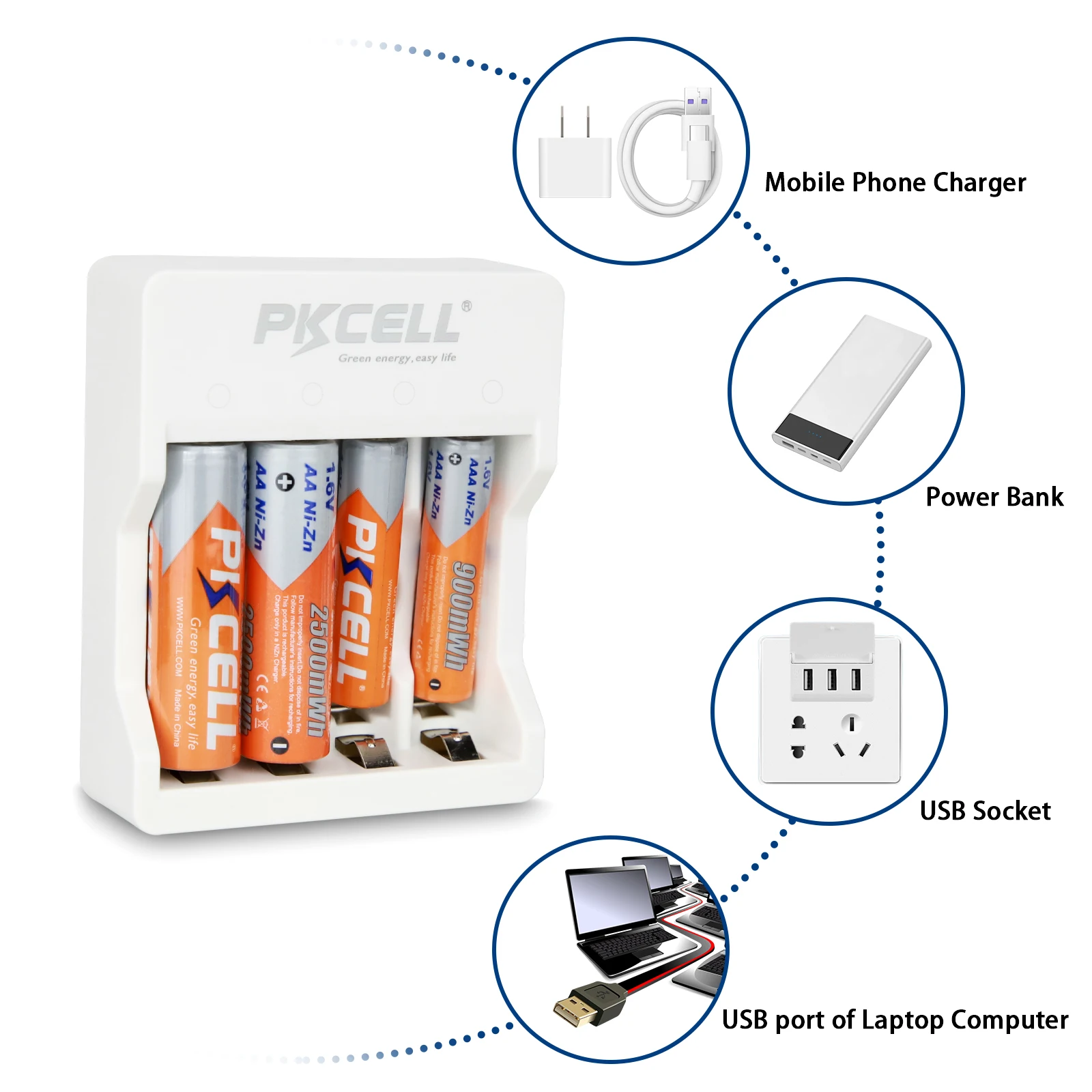 Зарядное устройство PKCELL ni-zn AA/AA для аккумуляторов 1-4 шт