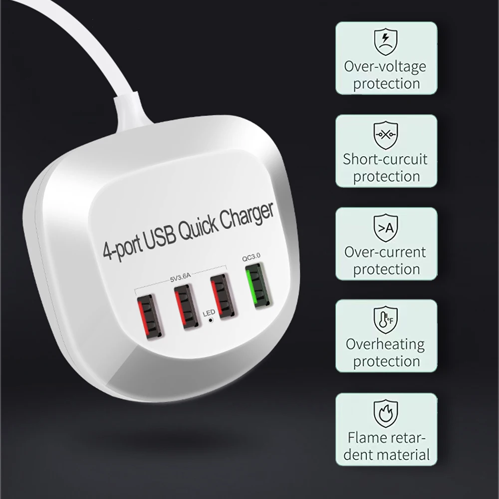 Особенность: 36 Вт, 4 порта, зарядное устройство USB QC3.0