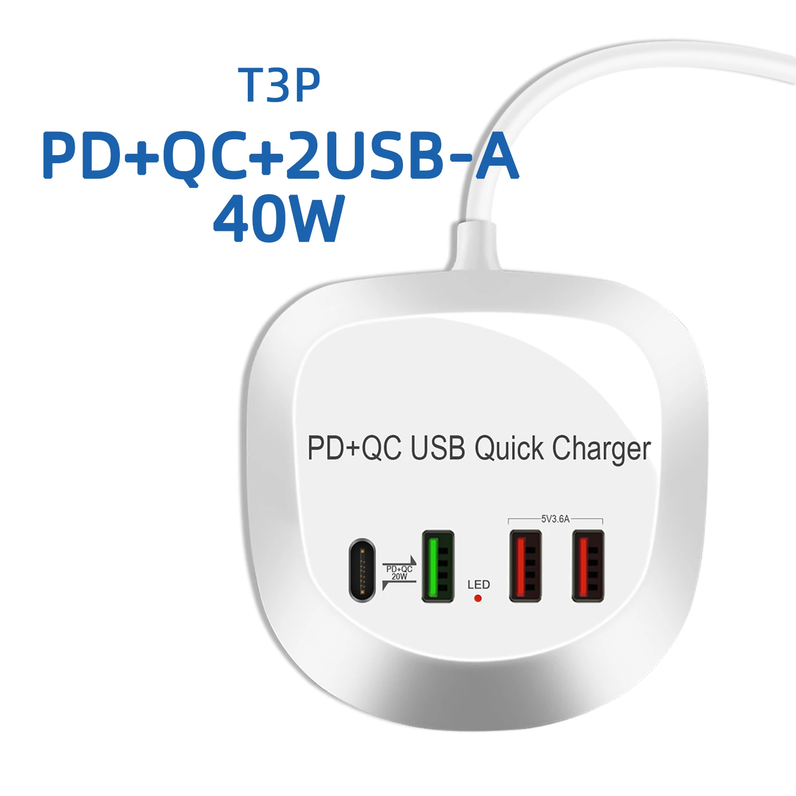 Особенность: 40 Вт, 4 порта, двойное зарядное устройство USB PD QC3.0