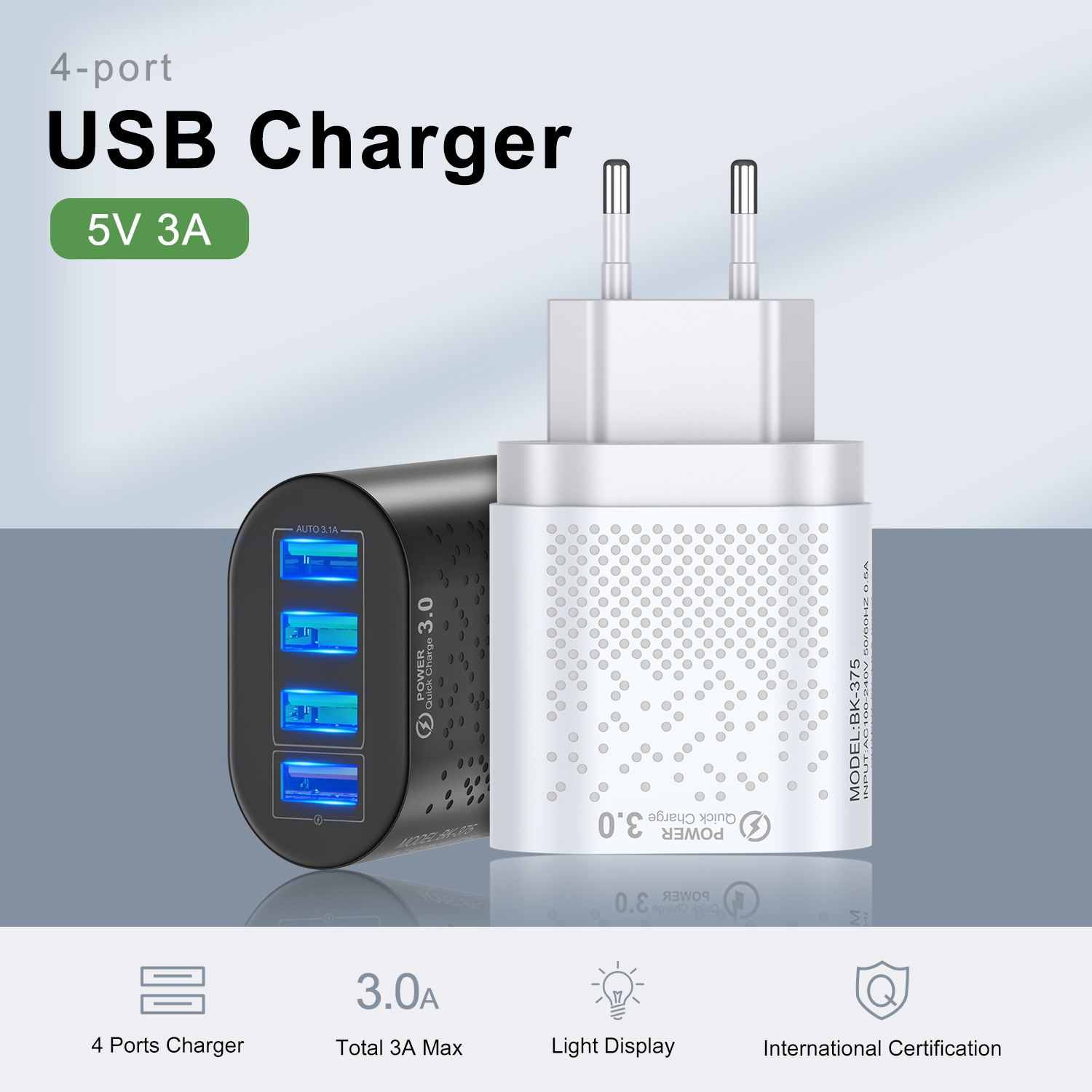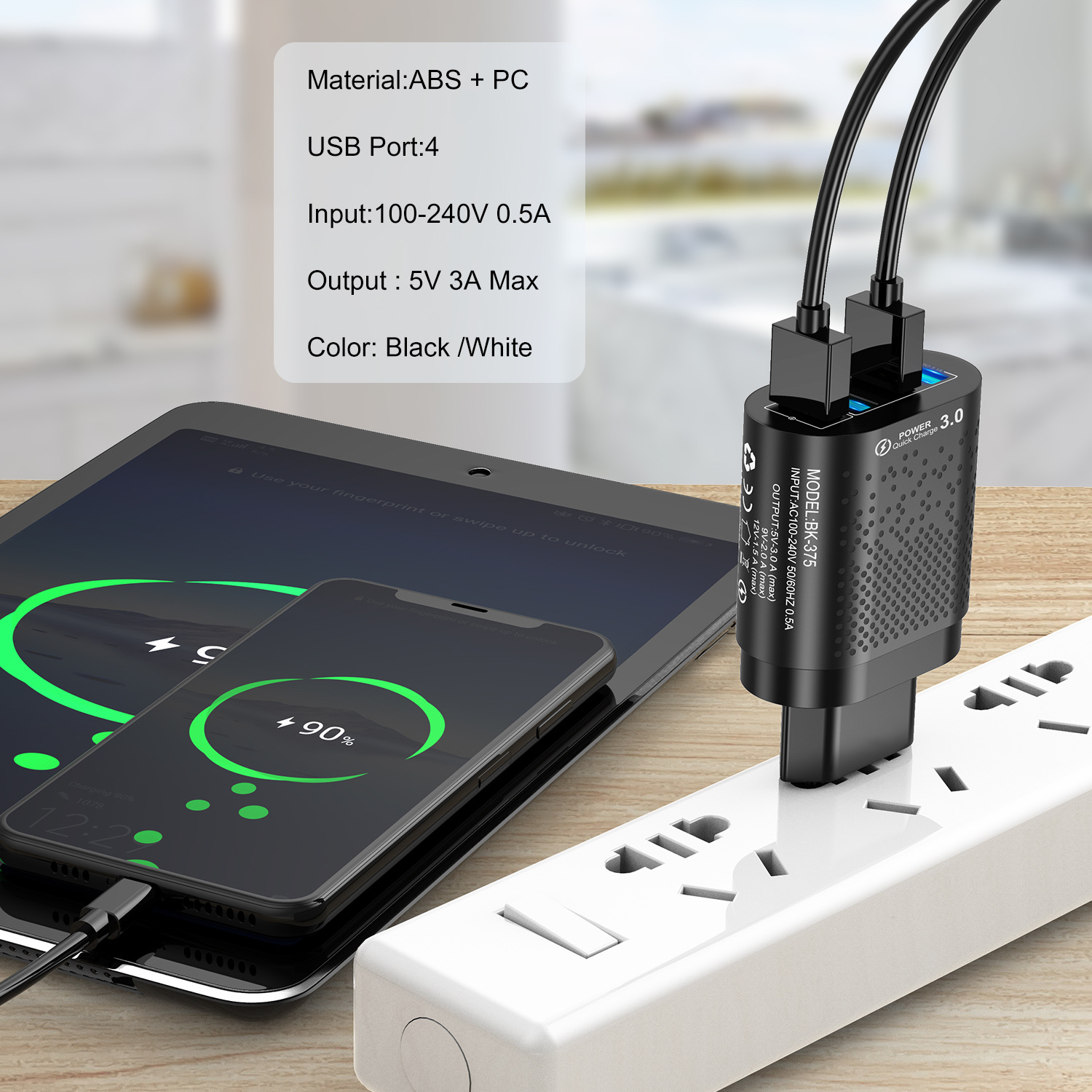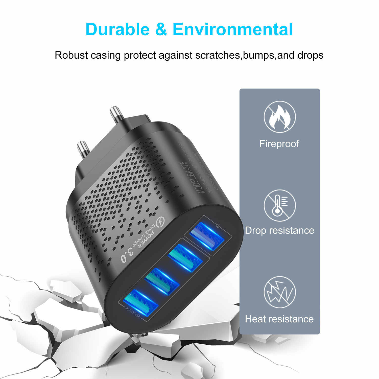 Зарядное устройство с 4 USB-портами и поддержкой быстрой зарядки, 48 Вт