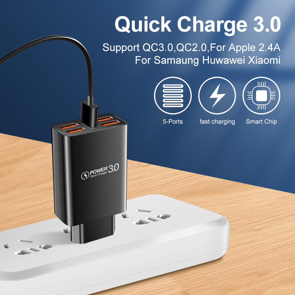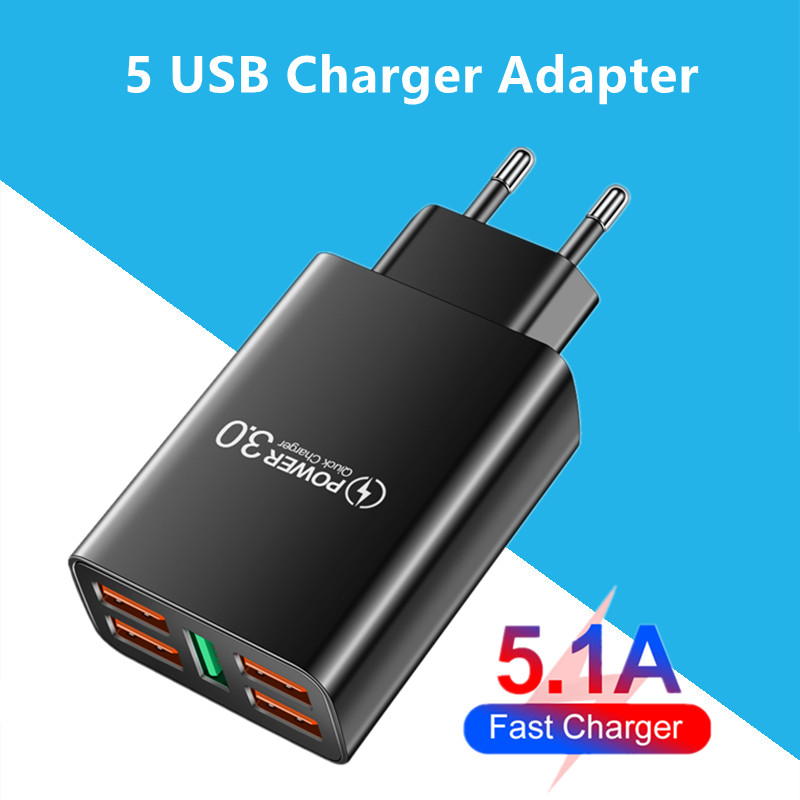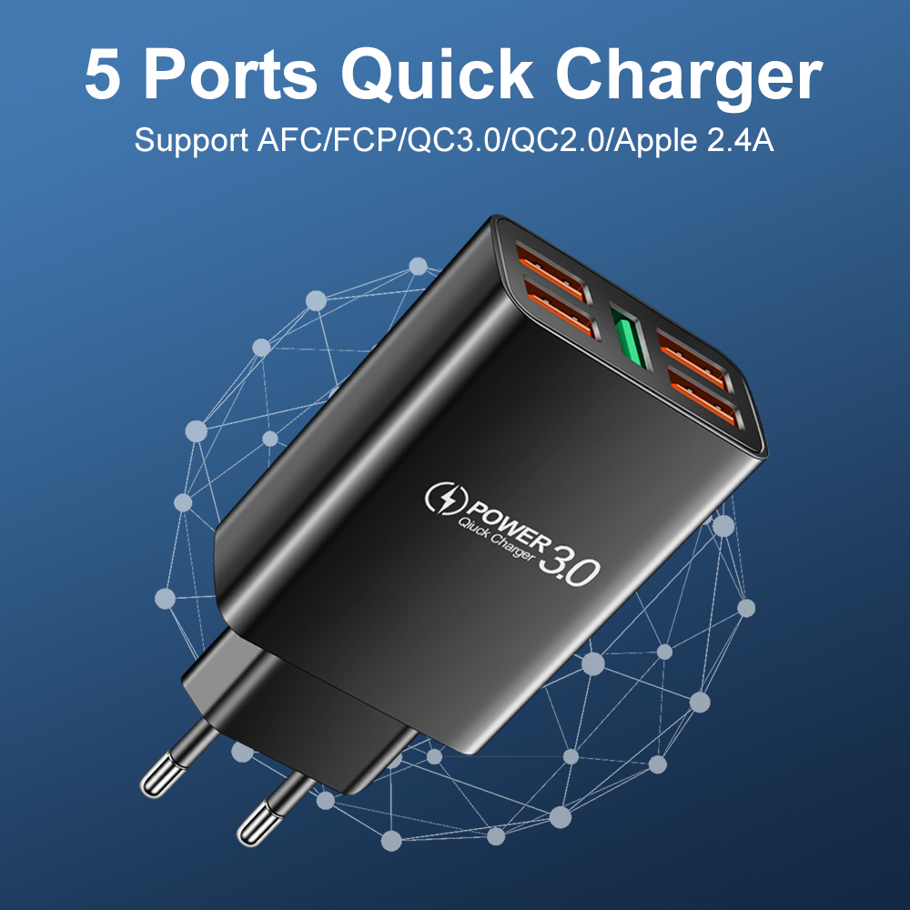 Новое зарядное устройство USB, 5 портов, быстрое зарядное устройство, быстрая зарядка для Iphone 13, 12, Xiaomi, Samsung, S10, Huawei, портативные настенные зарядные устройства для ЕС/США