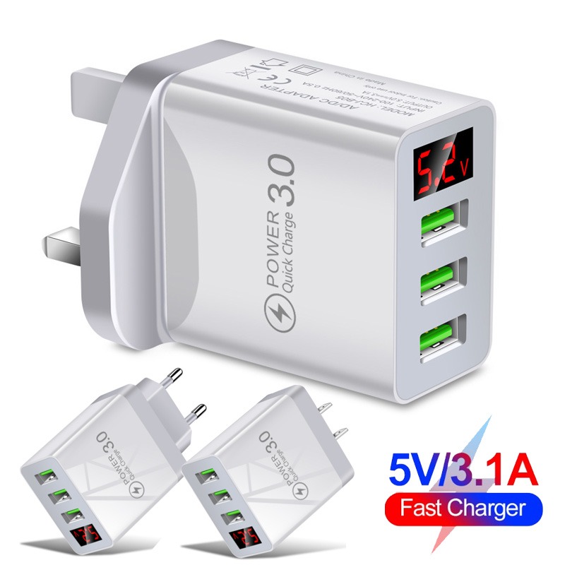 Зарядное устройство с цифровым дисплеем, 5 В, 3USB-порта