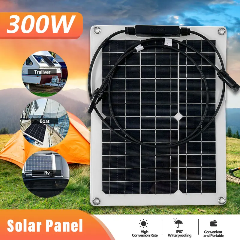 Зарядное устройство с солнечной панелью, 12 В, 300 Вт, 2 USB-порта