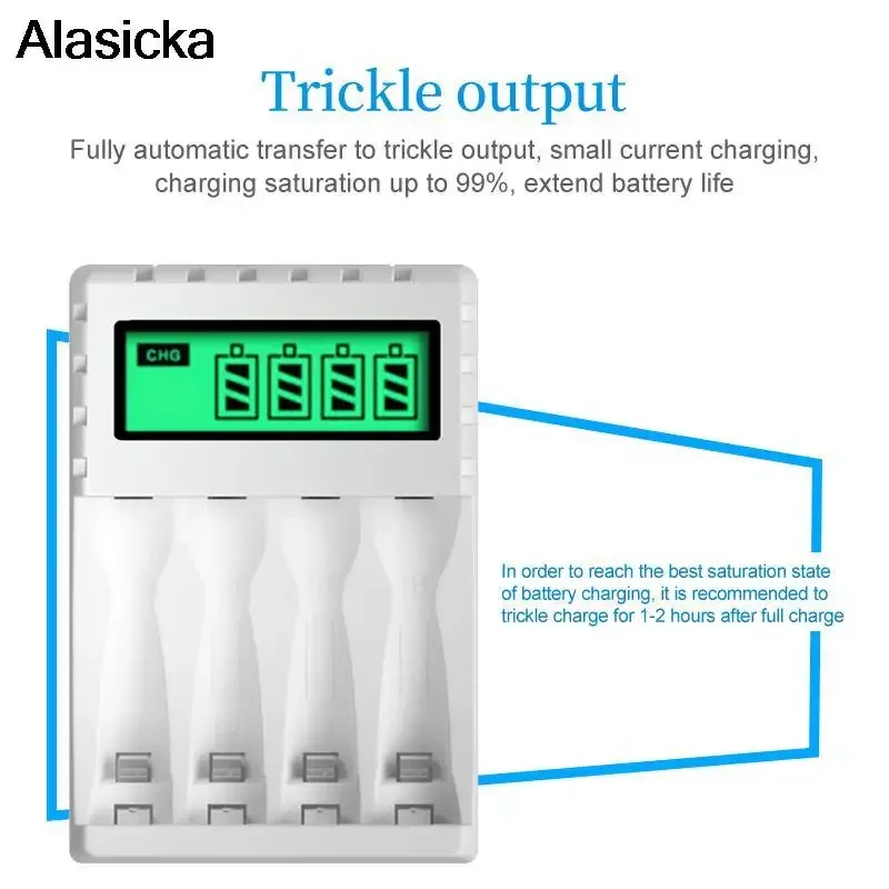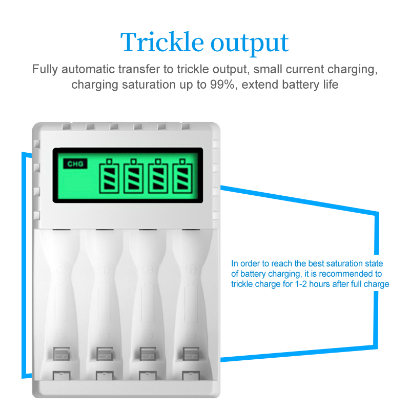 Интеллектуальное интеллектуальное зарядное устройство с ЖК-дисплеем и 4 слотами для никель-кадмиевых аккумуляторов AA/AAA Зарядное устройство
