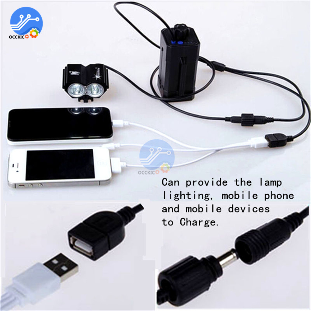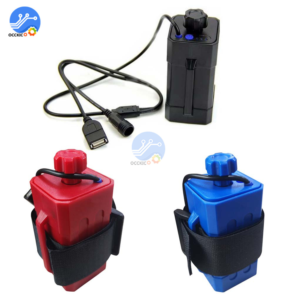 Чехол для аккумулятора сделан прочно, крышка с водонепроницаемостью, может использоваться в качестве внешнего аккумулятора для телефона или в качестве аккумулятора для велосипедной лампы. Разъем для зарядки для ПК. 5,5*2,1. Кнопки на чехол включается источника питания к разъему USB.