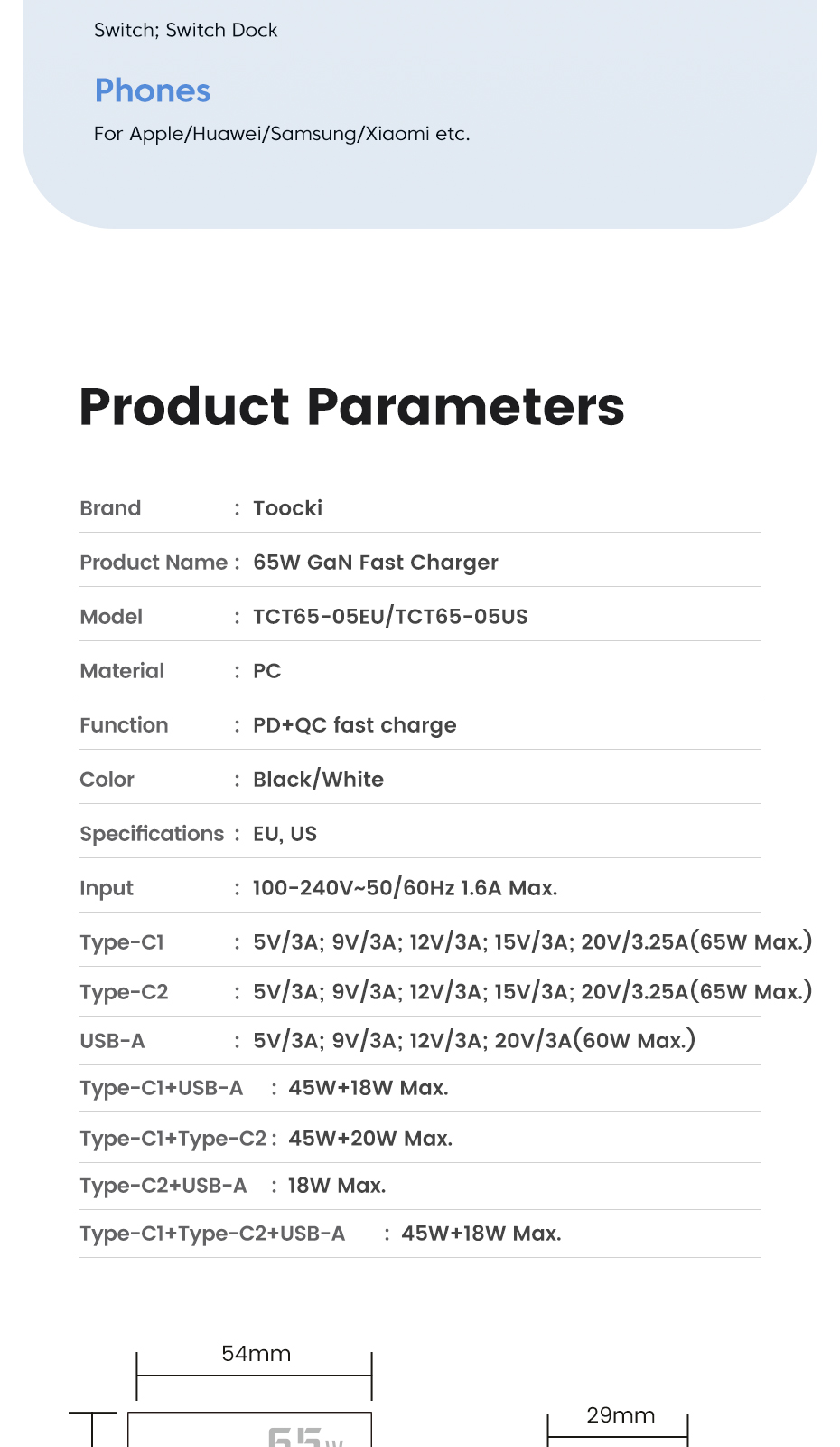<span class="SnowProductCharacteristics_SnowProductCharacteristicsItem__titleContent__534v9">Номер модели</span> Toocki 65w charger