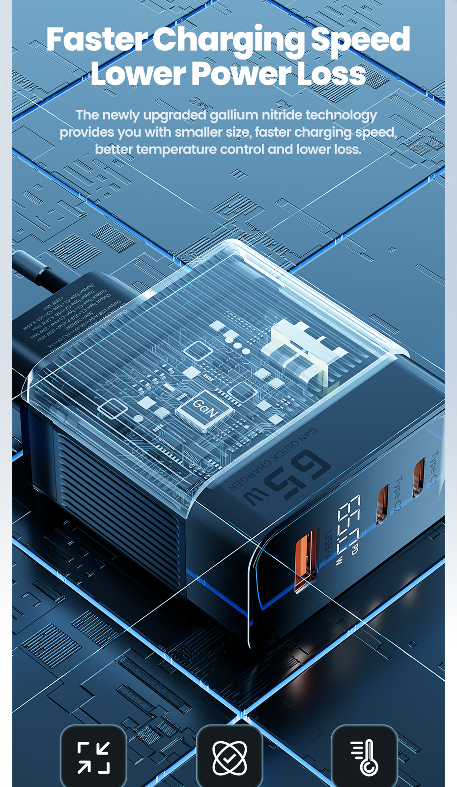 <span class="SnowProductCharacteristics_SnowProductCharacteristicsItem__titleContent__534v9">Feature 1</span> 65W GaN Charger/65W GaN USB Charger/65W GaN USB Type C Charger/65W GaN Charger Digital Display