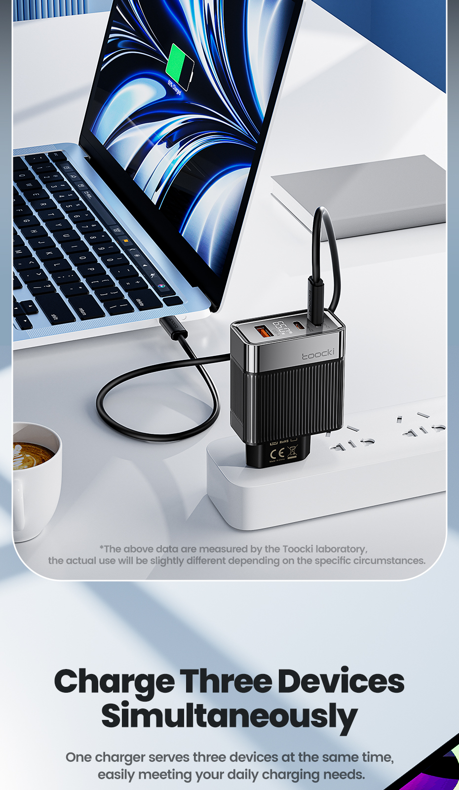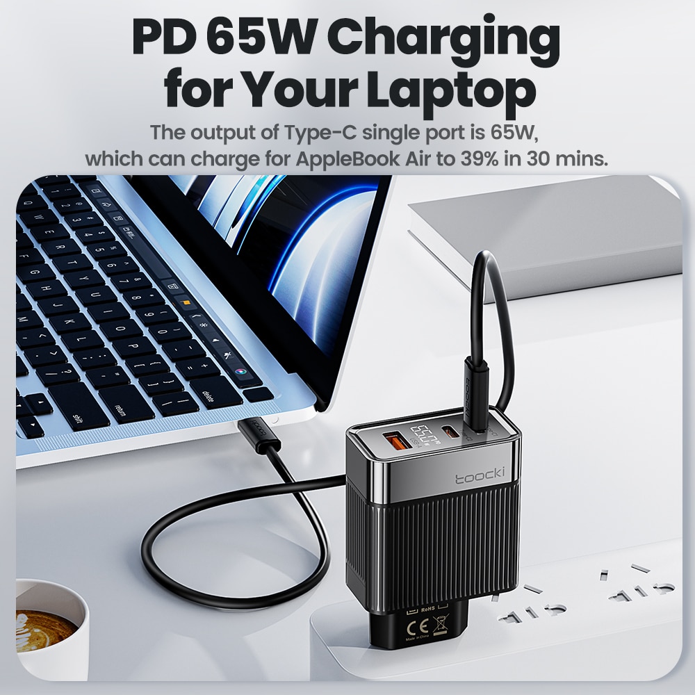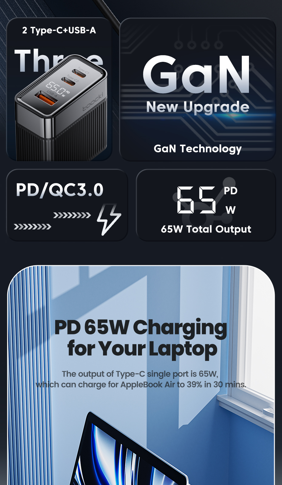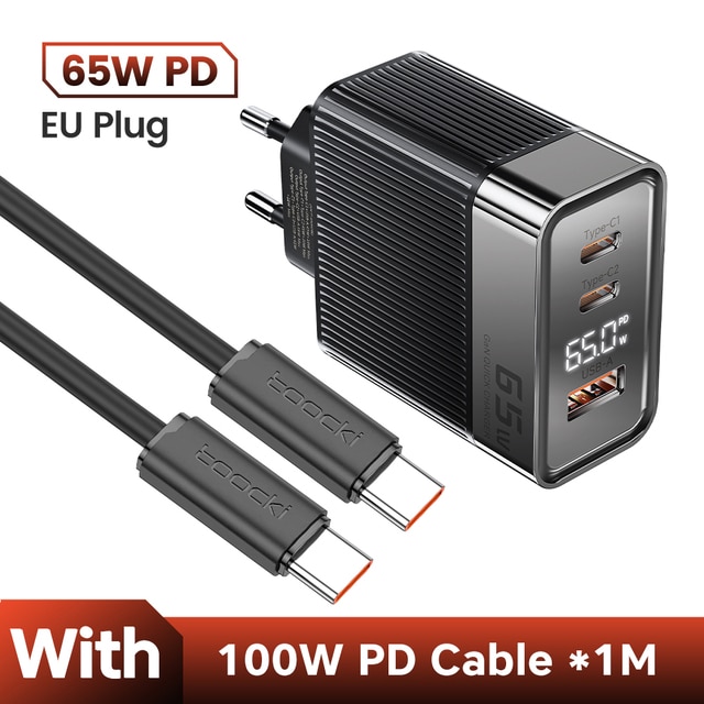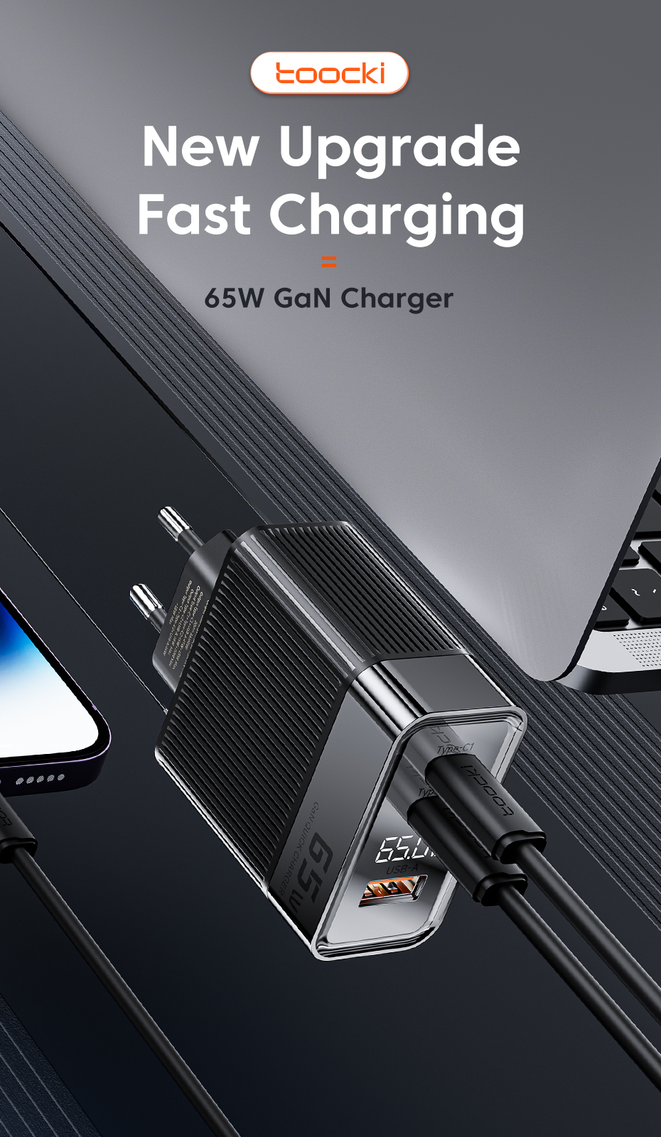 Зарядное устройство Toocki с 3-мя USB-портами и поддержкой быстрой зарядки, 65 Вт