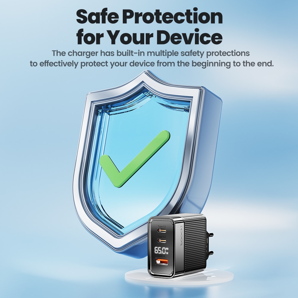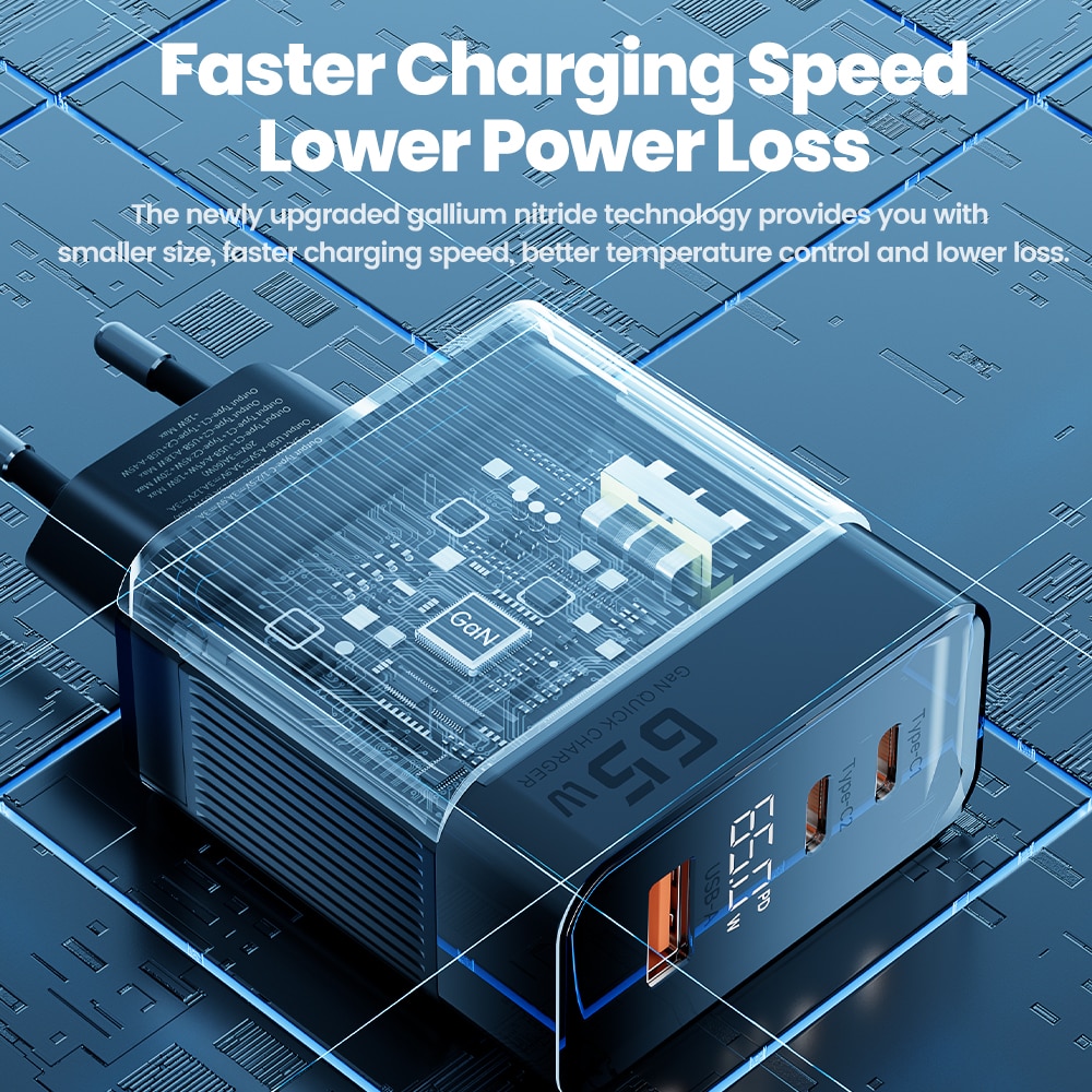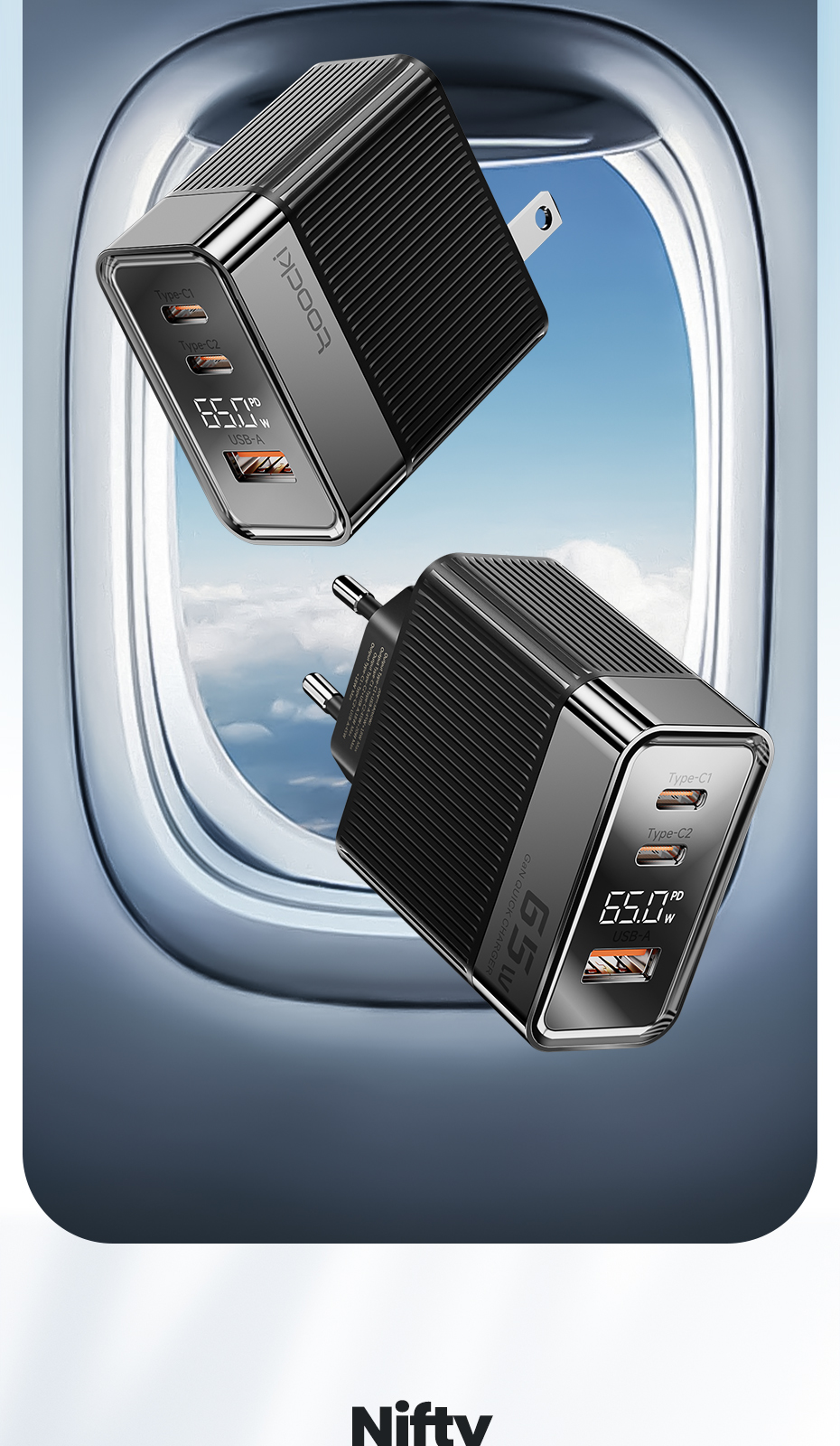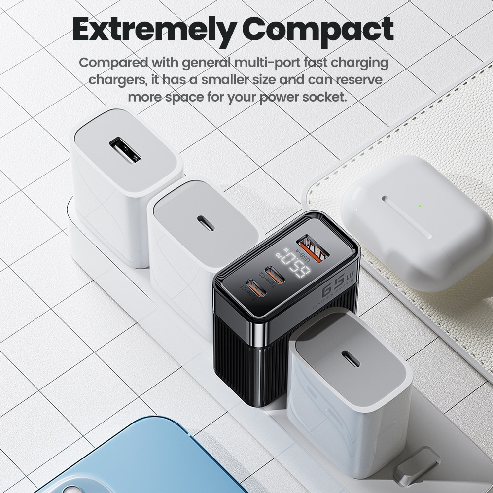 Зарядное устройство Toocki с 3-мя USB-портами и поддержкой быстрой зарядки, 65 Вт