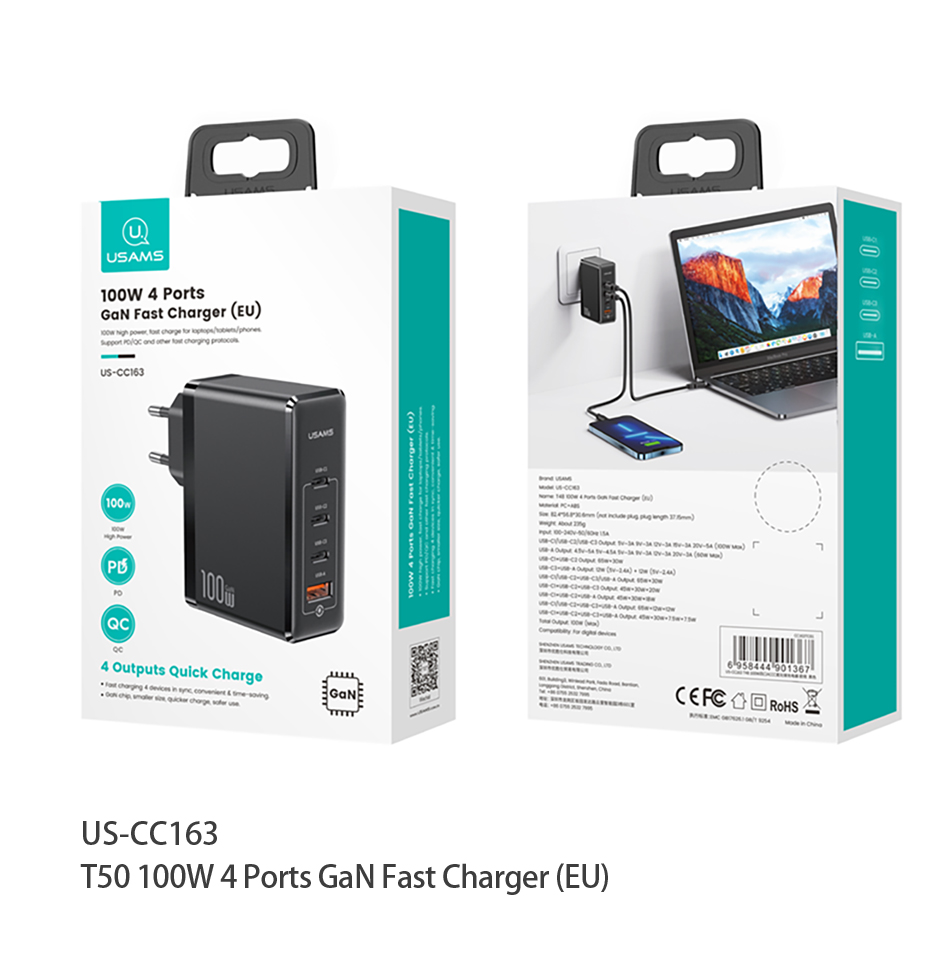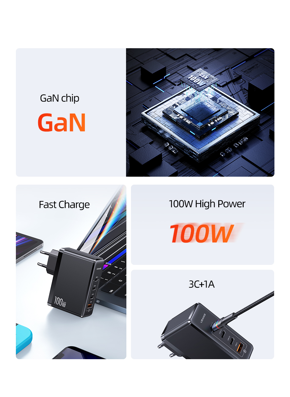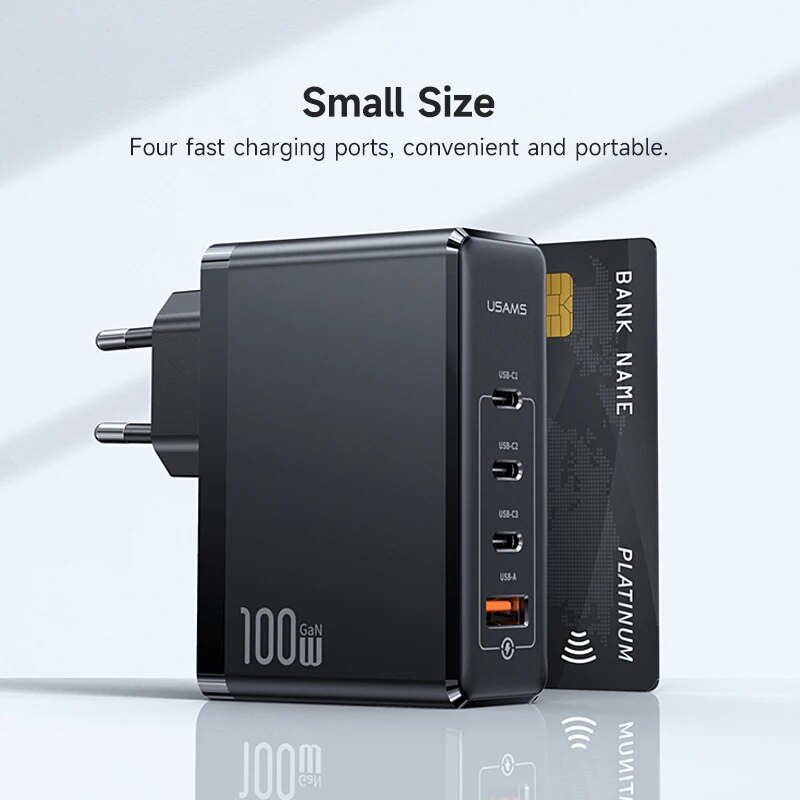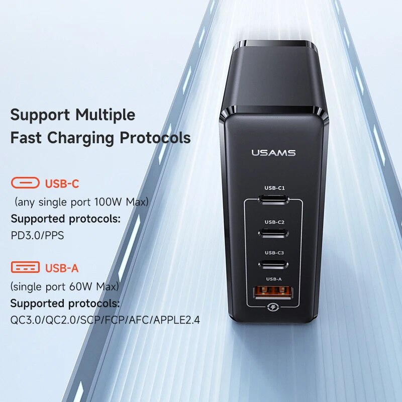 Зарядное устройство USAMS 100 Вт с 4 USB-портами и поддержкой быстрой зарядки