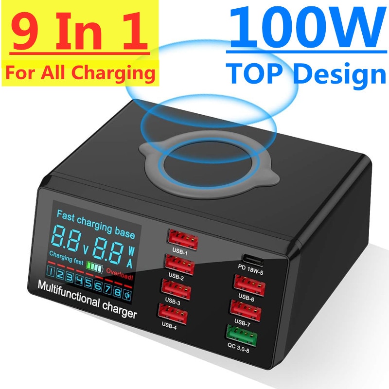 Зарядное устройство USB 100 Вт, 8 портов, быстрая зарядка 3,0, адаптер, концентратор, беспроводное зарядное устройство PD
