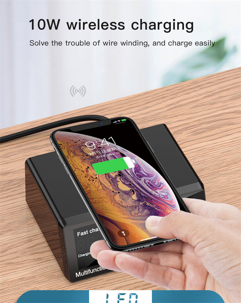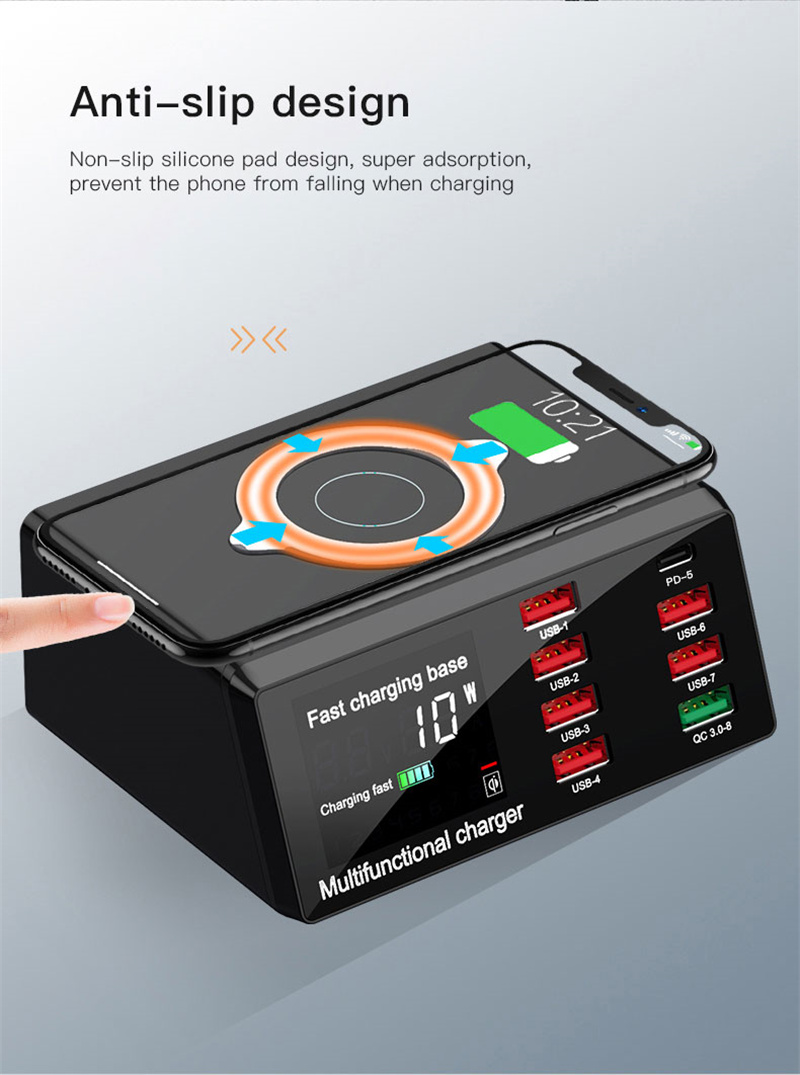 Беспроводная зарядка + цифровой дисплей с светодиодный экраном + порт PD 20 Вт + порт QC3.0 18 Вт + мульти-порты