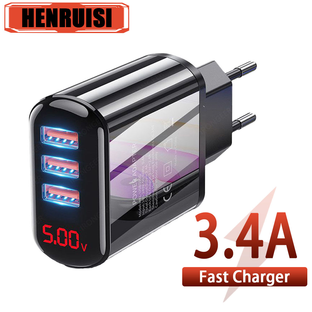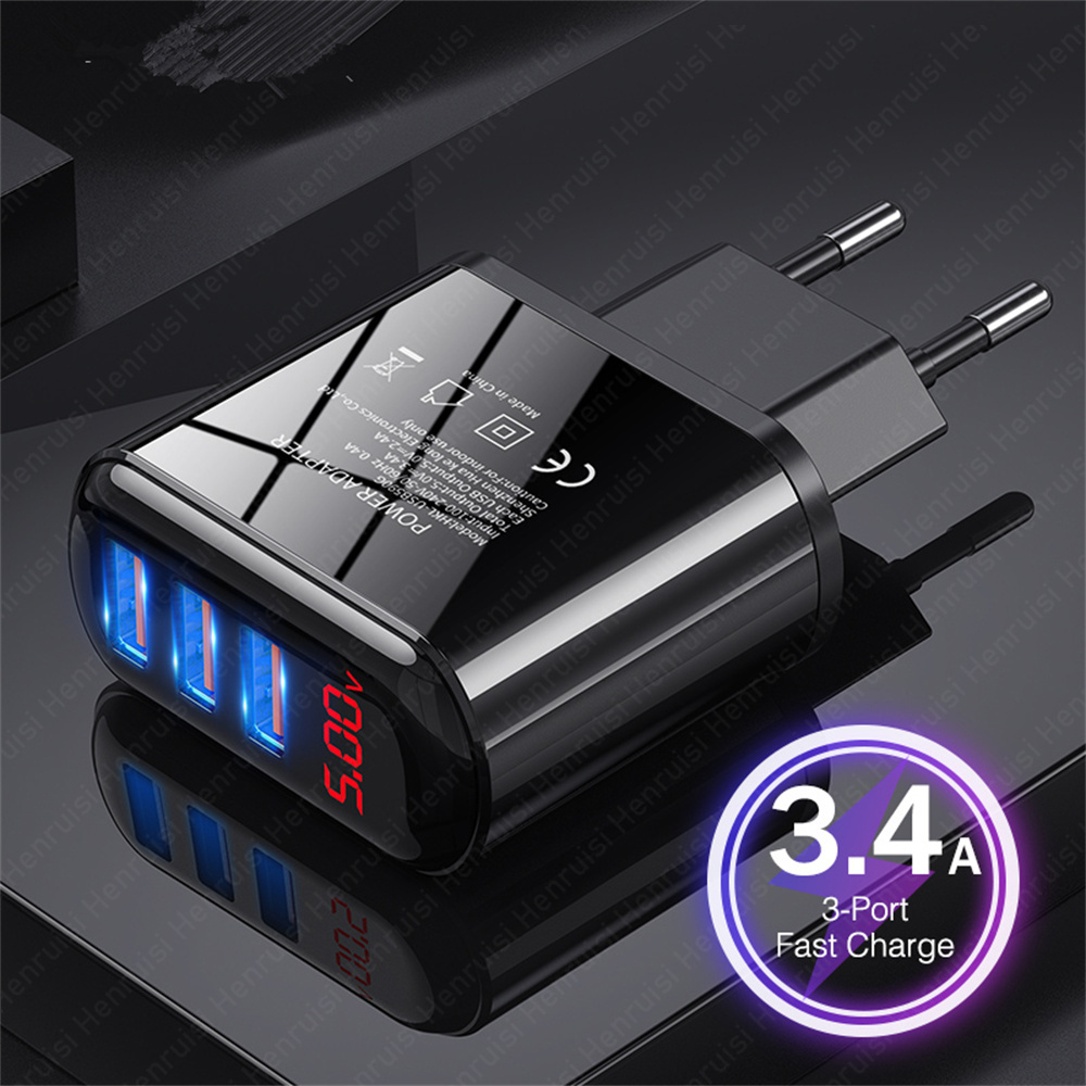 Зарядное устройство USB 3,4 а с цифровым дисплеем, быстрая зарядка, 3.0 мобильный телефон, адаптер зарядного устройства для iPhone, Samsung, Xiaomi, Huawei