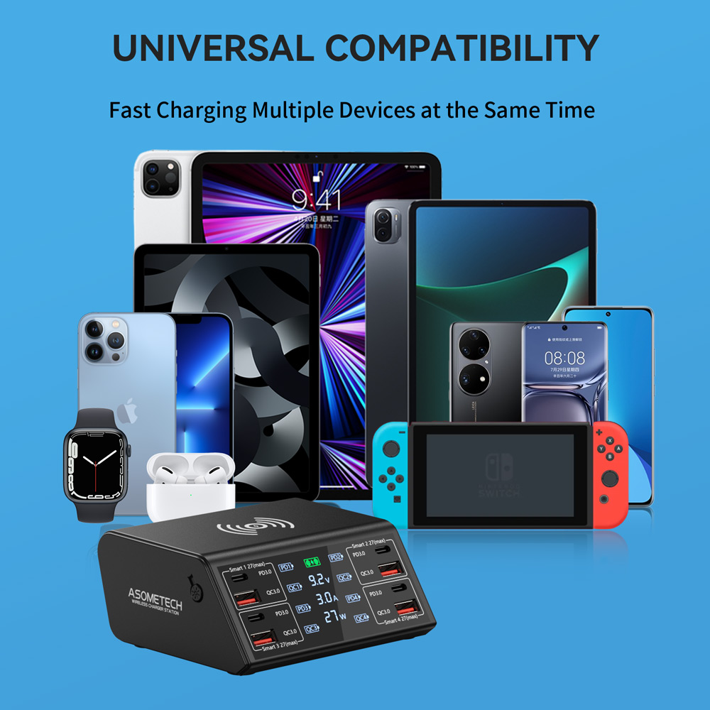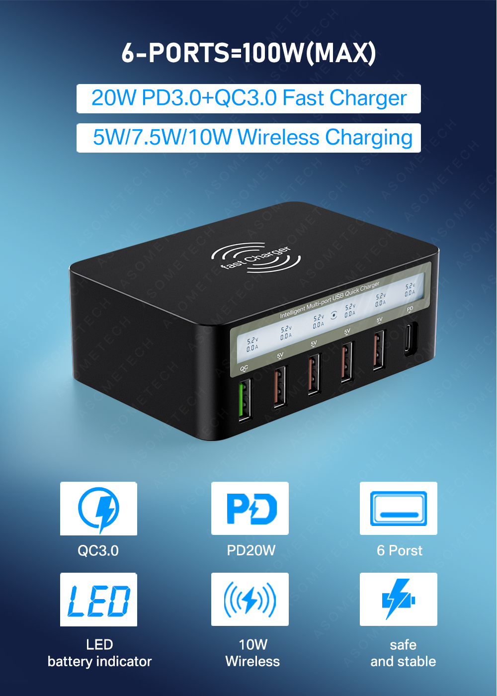 зарядное устройство usb c 100W 8 портов с беспроводной зарядкой