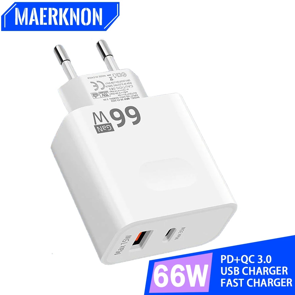Зарядное устройство USB PD 66 Вт Быстрая зарядка Тип C Зарядное устройство для телефона Вилка ЕС/США Адаптер питания для iPhone 14 Xiaomi Samsung Huawei Быстрое зарядное устройство