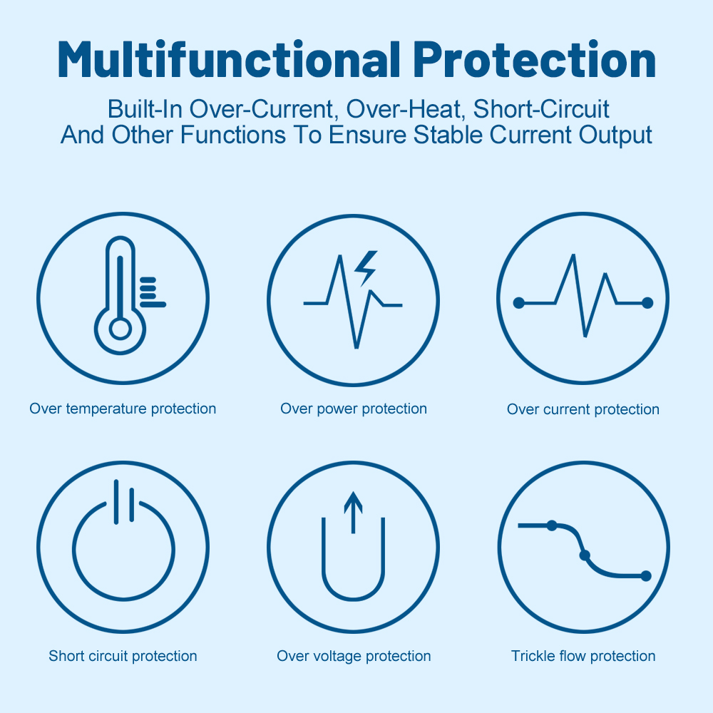 4. Множественная защита, встроенная защита от перенапряжения, перегрузки по току, перегрева, короткого замыкания и других функций.