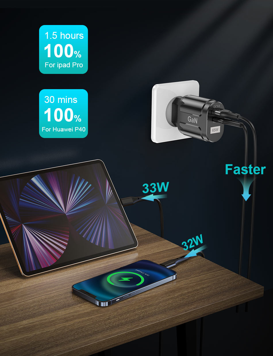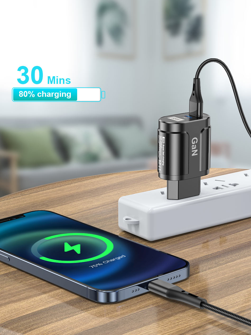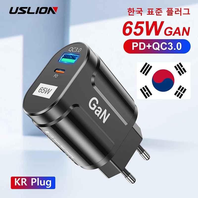 Зарядное устройство USLION GaN USB C, 65 Вт, быстрая зарядка