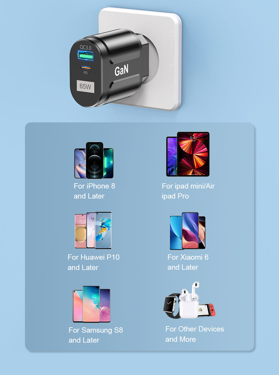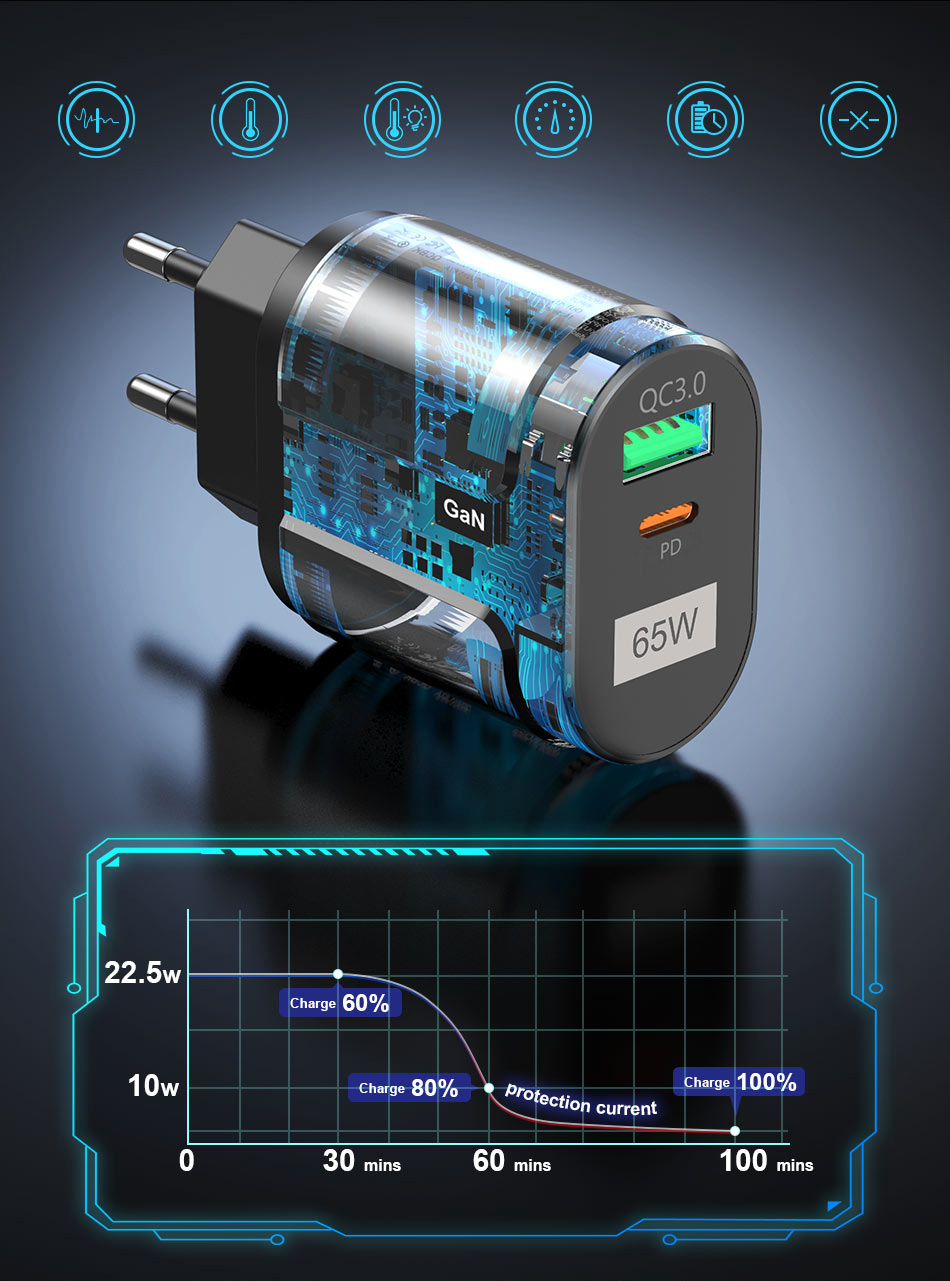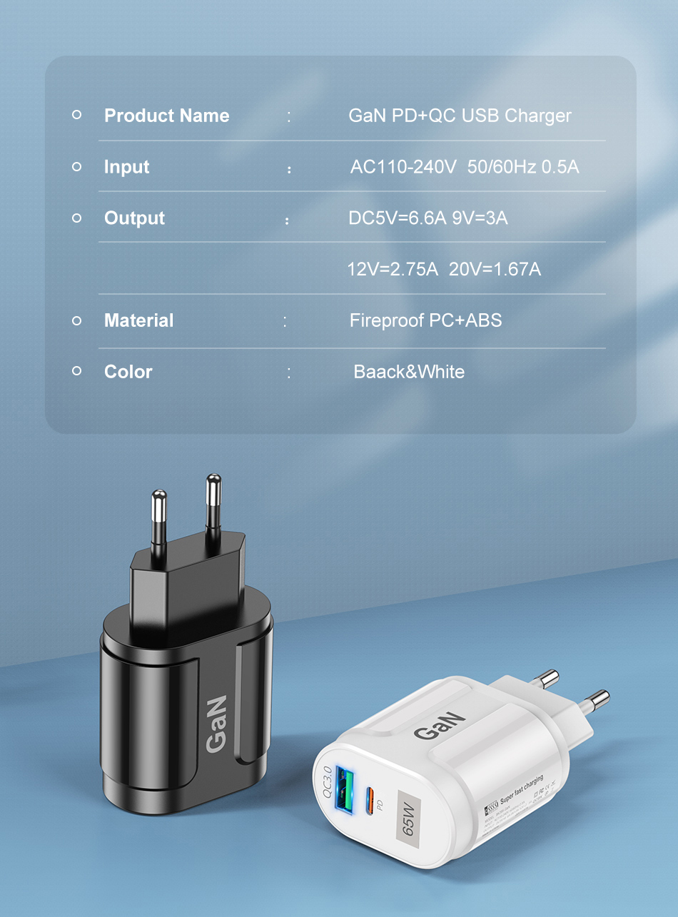 Зарядное устройство USLION GaN USB C, 65 Вт, быстрая зарядка