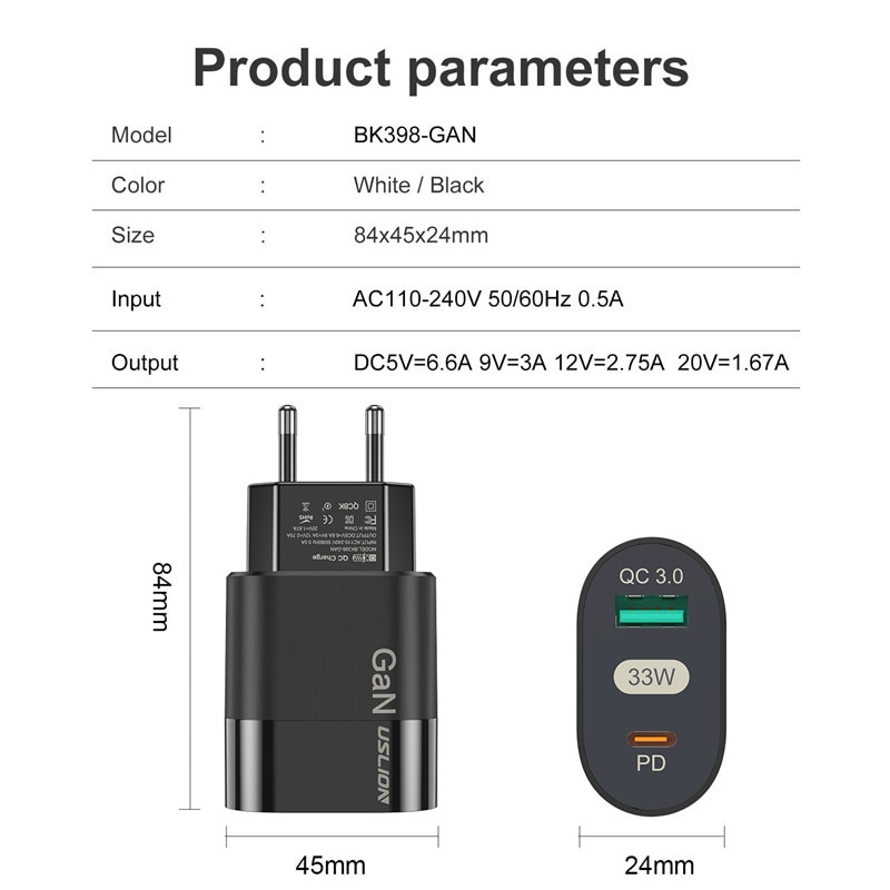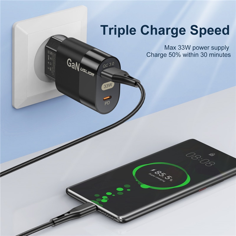 Зарядное устройство USLION сетевое с поддержкой быстрой зарядки, 33 Вт
