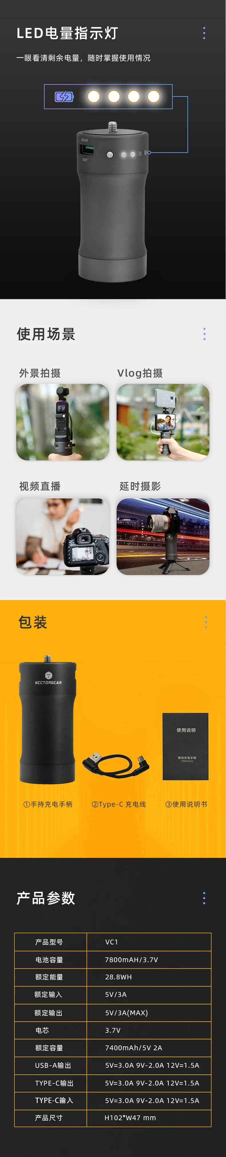 Зарядный блок питания Vectorgear VC1, 7800 мАч, 18 Вт, PD QC