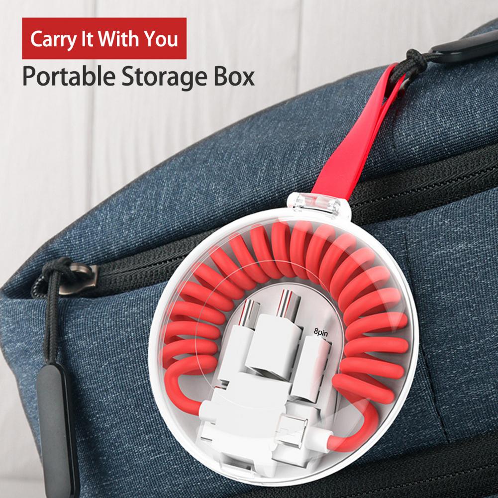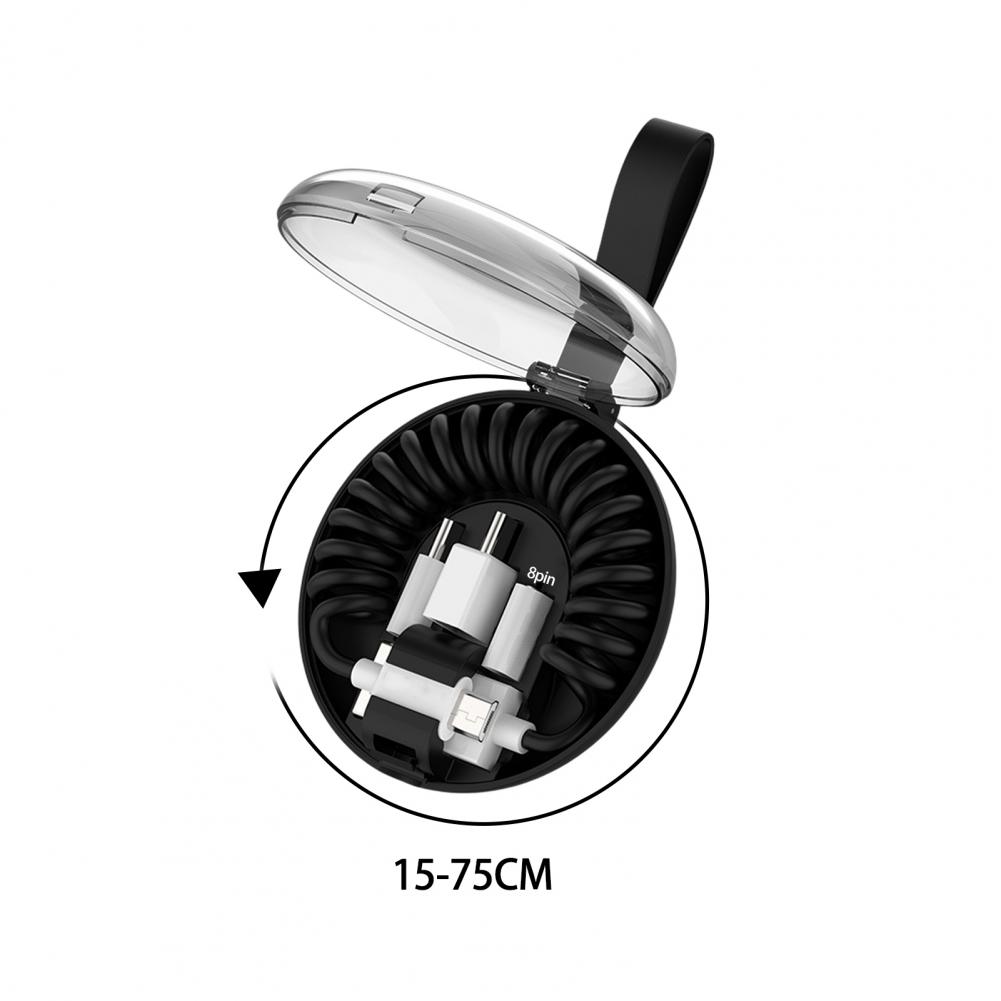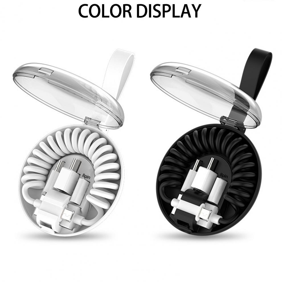 Зарядный кабель 3 адаптера с ящиком для хранения Эластичная безопасная зарядка 3 в 1 Телефон USB Пружинный кабель для передачи данных для Android для 8Pin для Type-C
