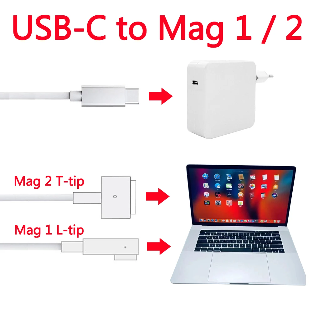 Зарядный кабель USB C Type C к Mag 1 2 для Macbook Pro Air 13, 15 дюймов, адаптер питания, конвертер, кабель 45 Вт, 60 Вт, 85 Вт