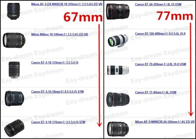 Не подходит дляКамеры без головки фильтра или других размеров (кроме 40,5/43/49/52/55/58/62/67/72/77/82 мм).