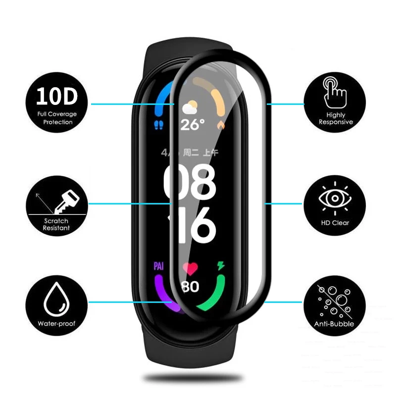 Feature 1 10D Curved Edge Protector Glass For Xiaomi Mi Band 4 5 6 7