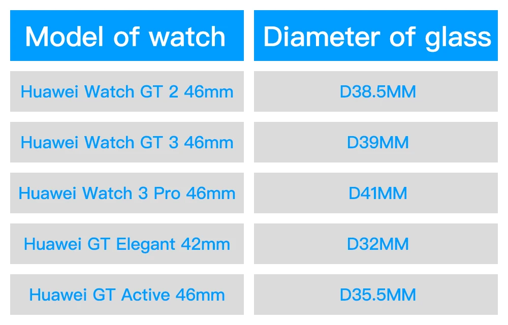 Примечание: 46 мм 42 мм в часах Huawei GT 3 46 мм, GT 2 46 мм, GT Elegant 42 мм, GT Active 46 мм представляет только название модели, не реальный размер закаленного стекла!